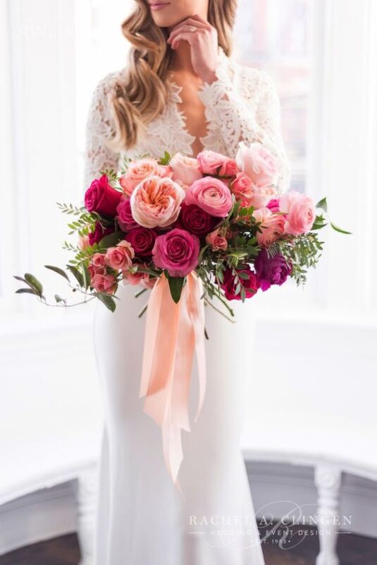 You can opt for incorporating this color as a subtle element, or choose the option of a bouquet in various shades of pink.