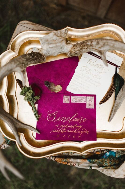 If you decide on Magenta as the main color for your wedding, you can opt for wedding invitations in this color. They will introduce guests to the wedding atmosphere and beautifully complement the wedding stationery.
