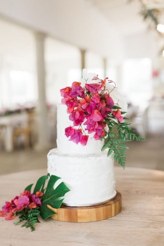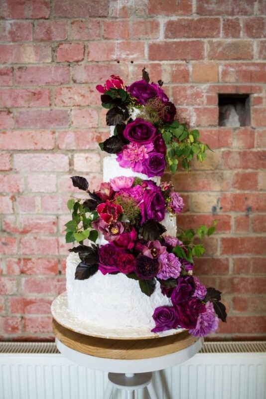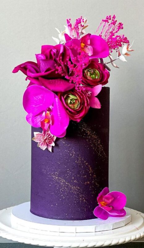 With the wedding cake, it can be similar to the bride’s bouquet. You can choose deep Magenta accents on the cake, or order a cake entirely in this energetic color.