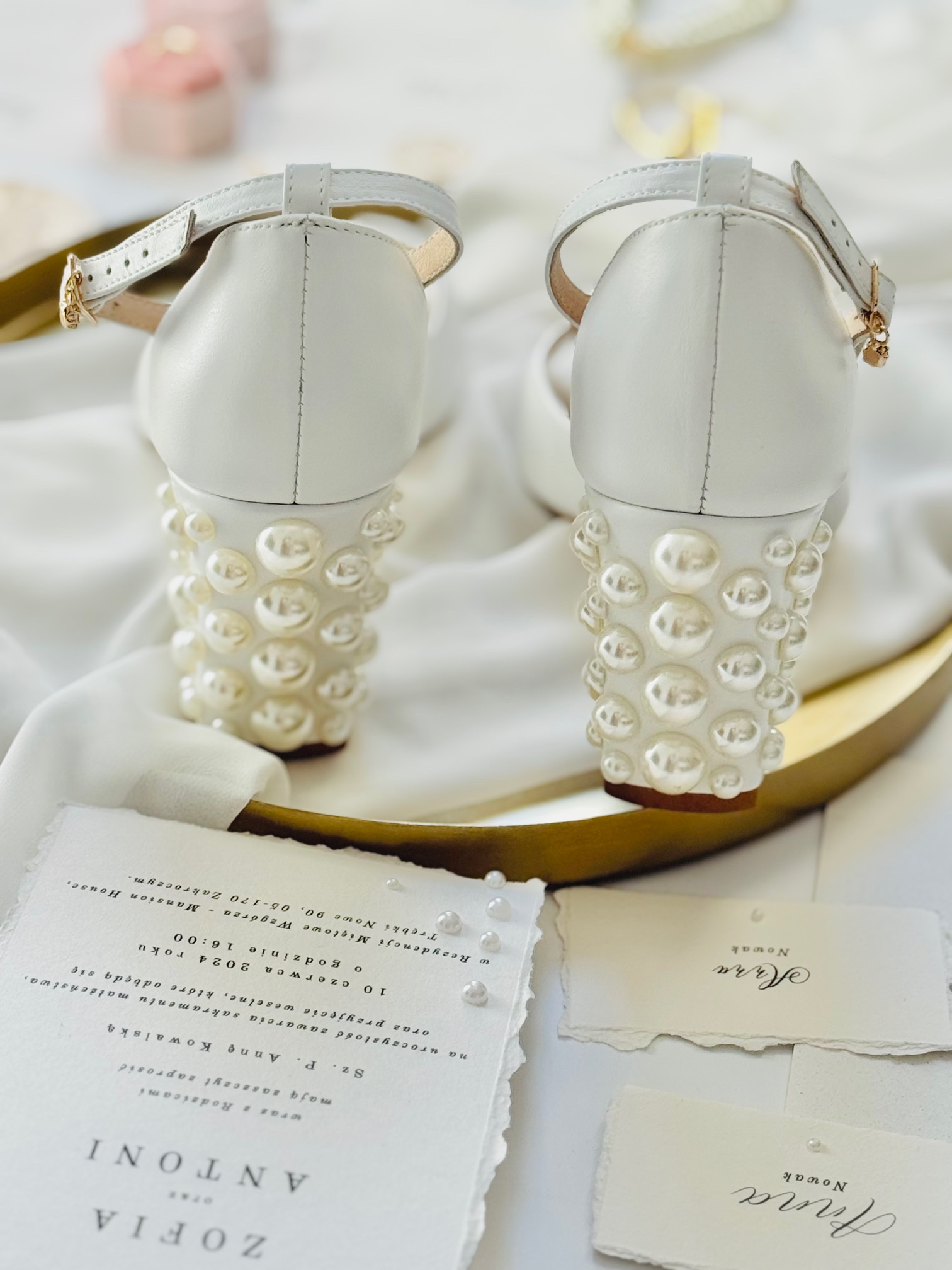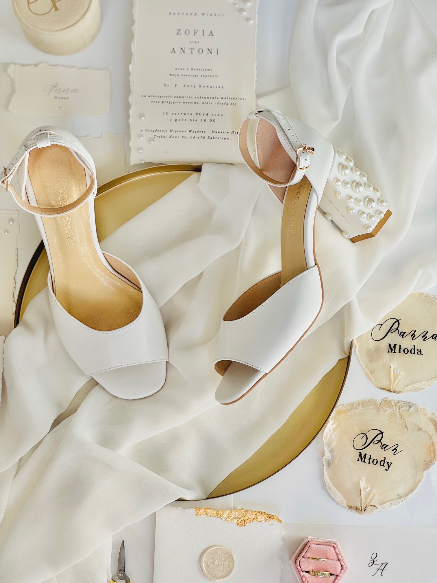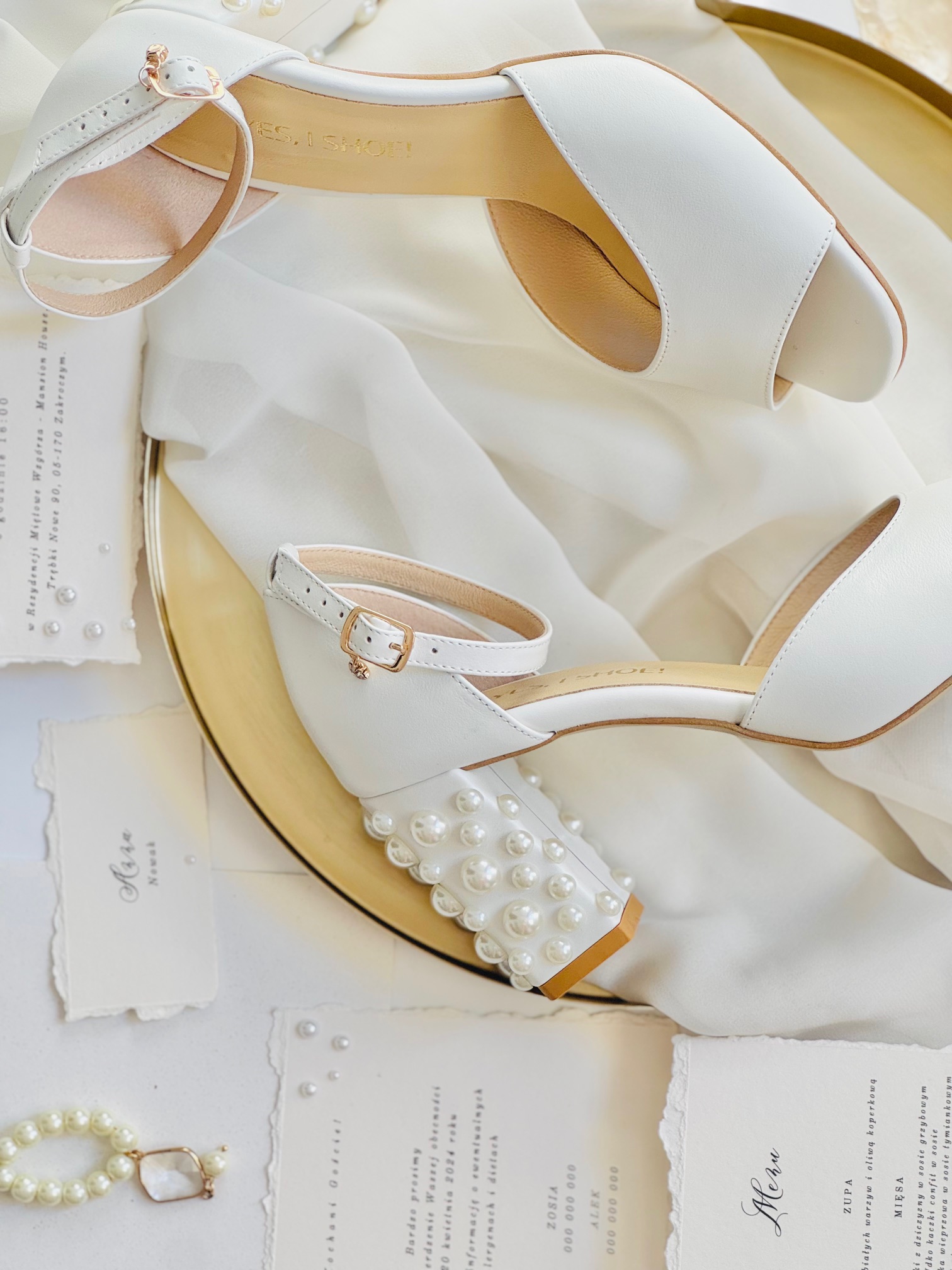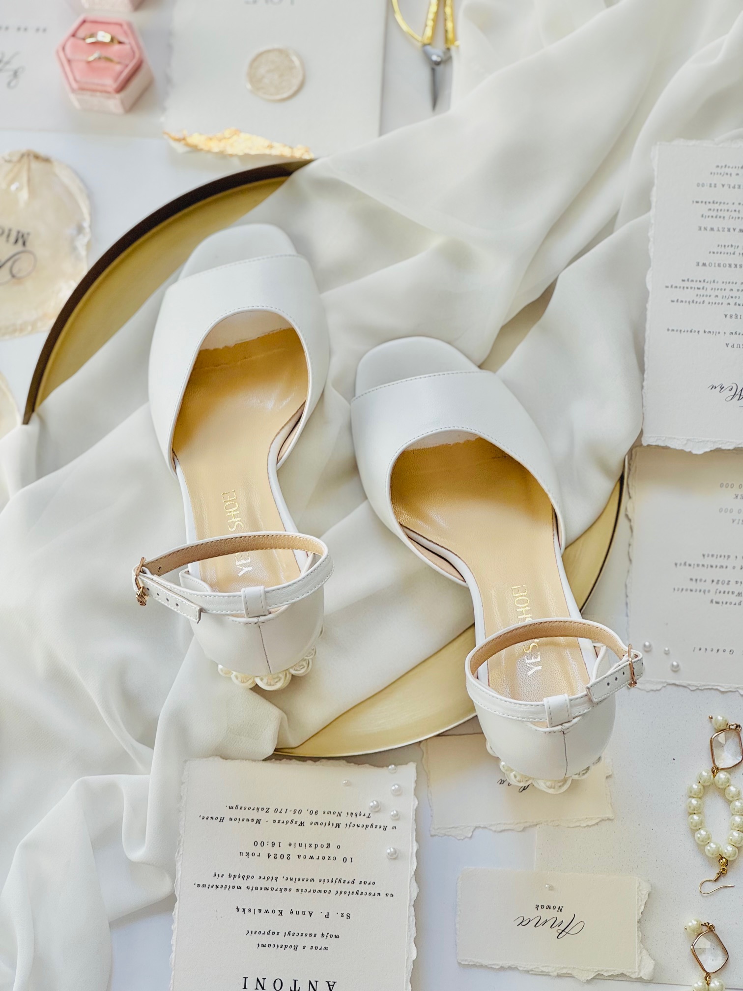 The Jagna Ivory model is a wedding shoe that combines elegance and modernity. Full-grain leather in off-white emphasizes their classic character, open toes add lightness, and the square sole increases the comfort of wearing. The biggest advantage of the model, however, is the spectacular heel set with pearls – an element that makes the Jagna Ivory absolutely unique and memorable shoes. This is a proposal for brides who want their footwear to be a bold, fashionable choice, and at the same time provide comfort and stability on the most important day of life.