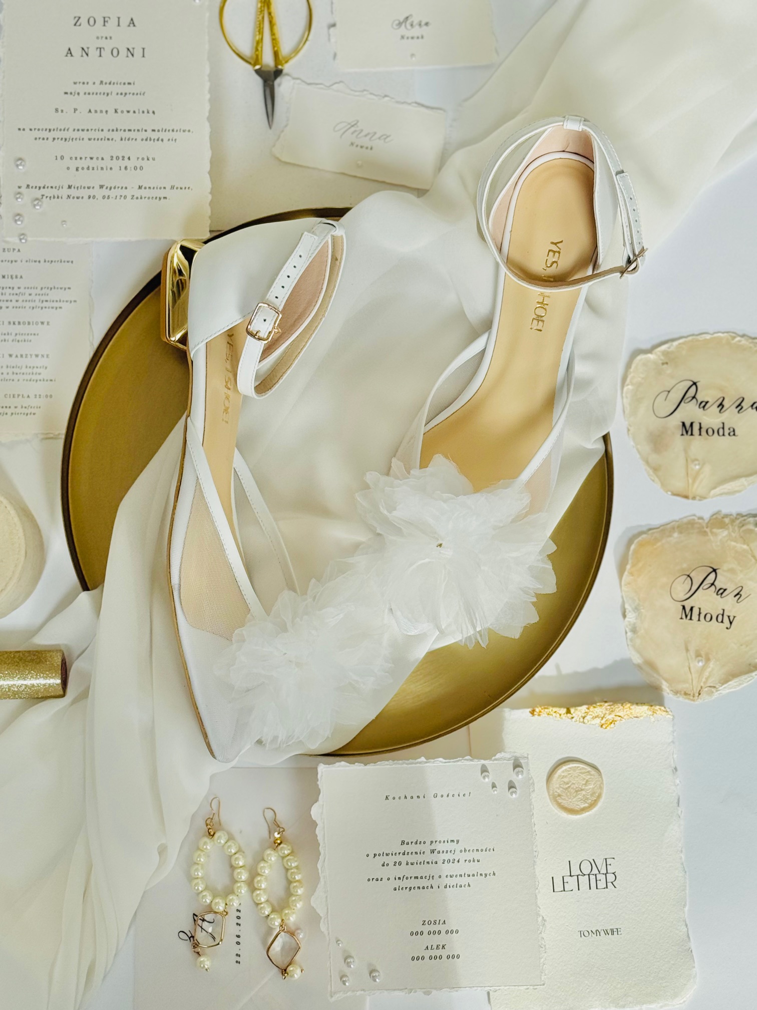 Although the Wanda Cream Love is a flat model, the gold heel with a height of 1.3 cm adds a unique character to the whole. A subtle, shiny detail brings a modern twist to classic ballet flats, making them not only comfortable, but also elegant and effective. The heel blends beautifully with satin and other wedding accessories, emphasizing chic and attention to detail.
