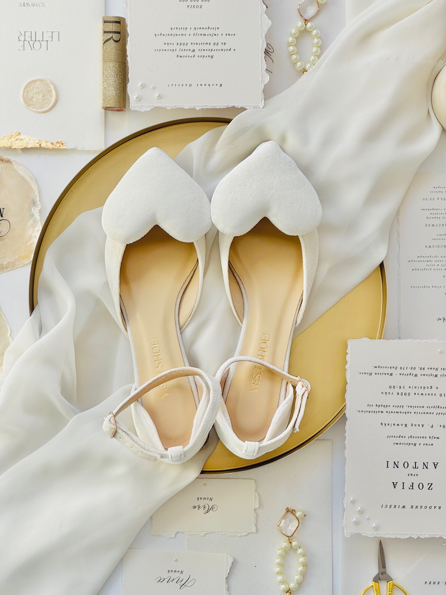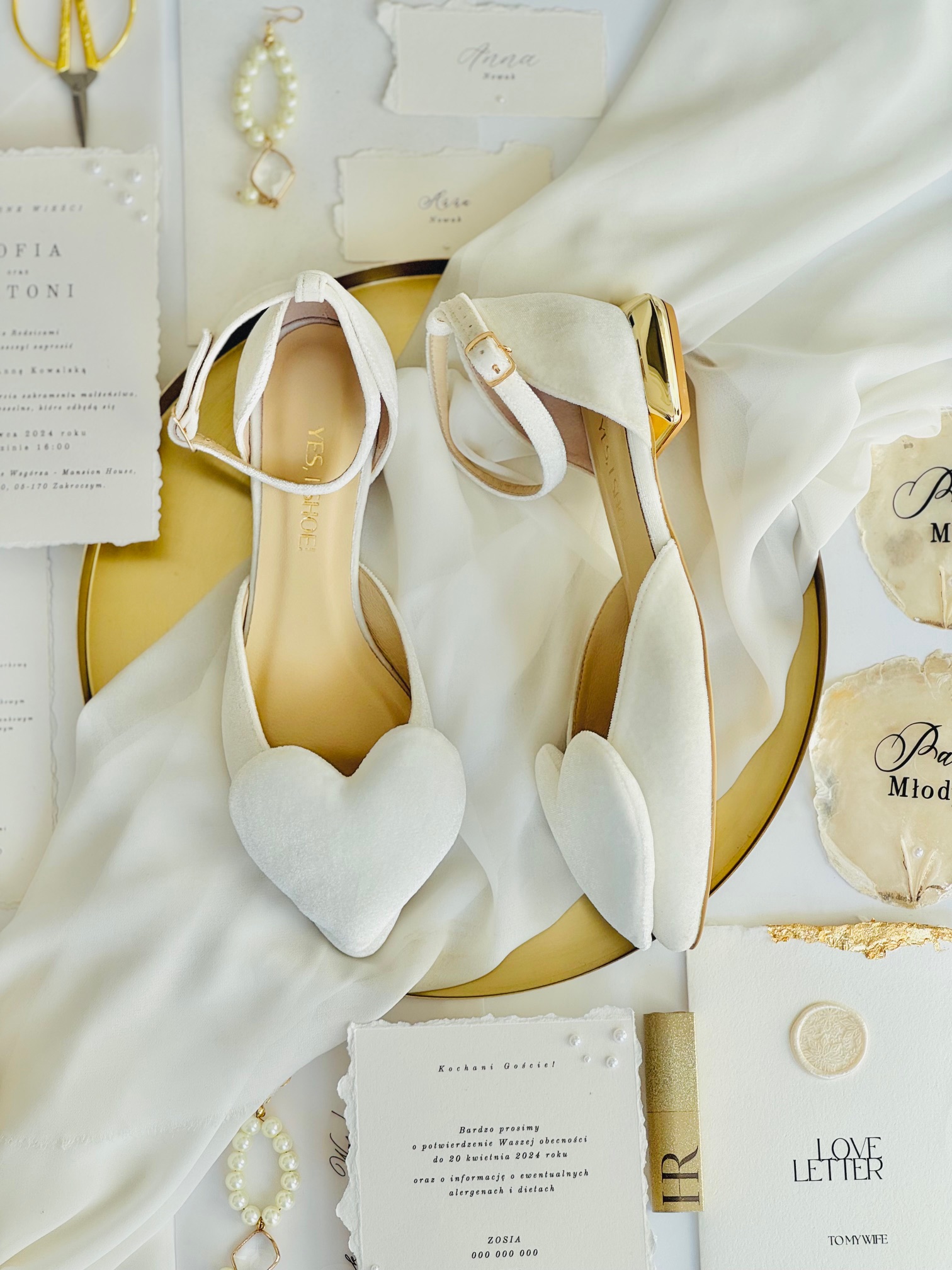 Wanda Cream Love are wedding ballet flats for women who want to combine comfort with elegance and subtle romanticism. These are shoes that not only look beautiful, but also allow you to feel confident and comfortable throughout the special day. Every detail – from satin to gold heels to hearts – has been designed to make your wedding moments even more magical and memorable.