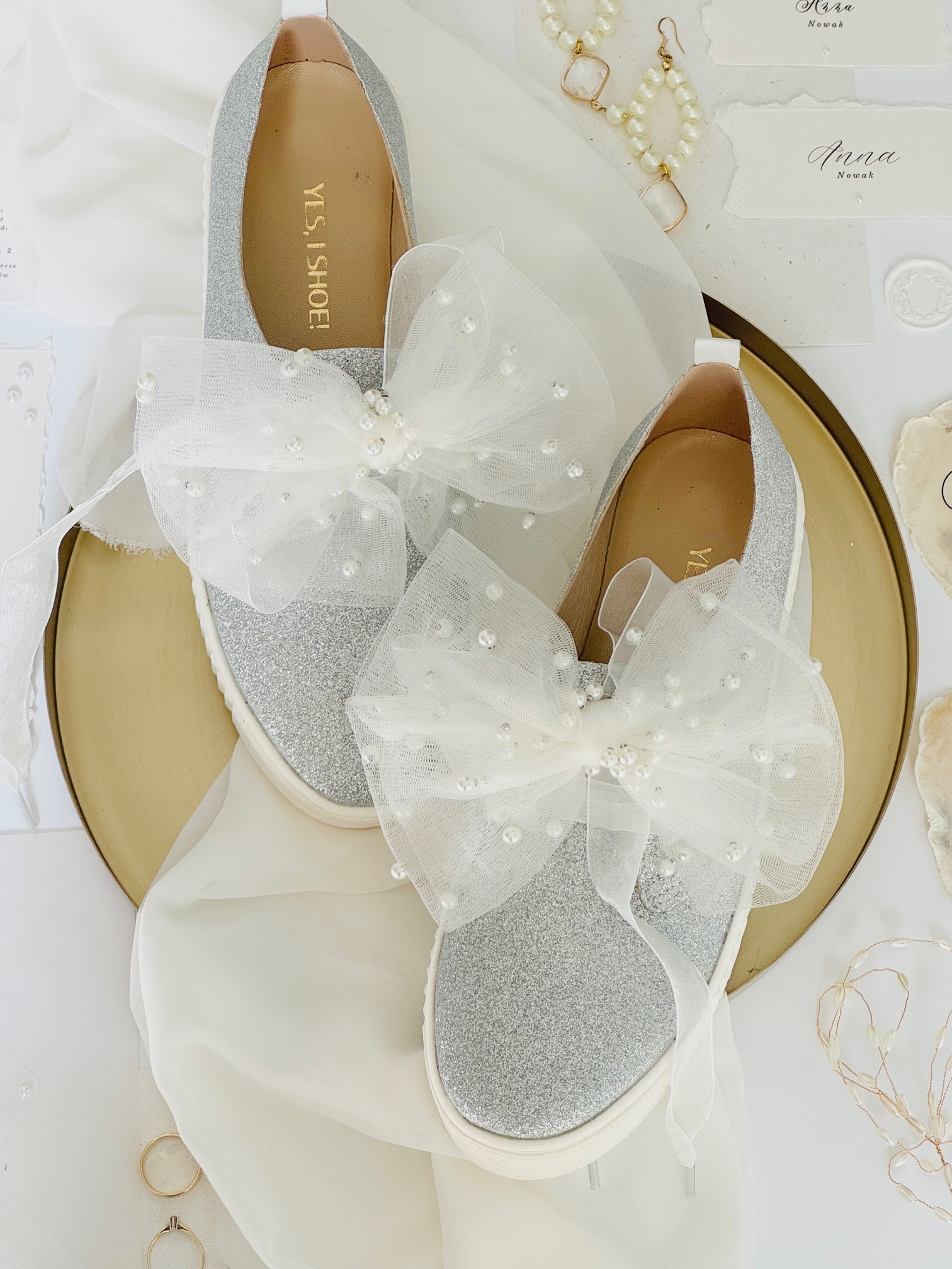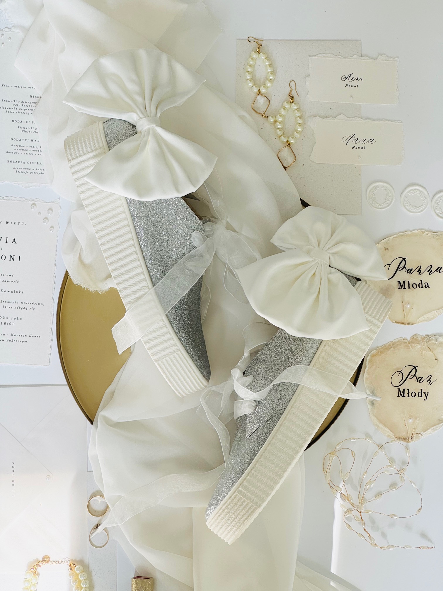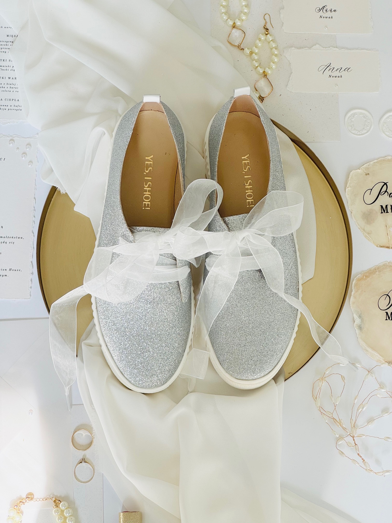 Trampki ślubne Aurora Silver Clip – Elegancja i Komfort na Twoim Ślubie!