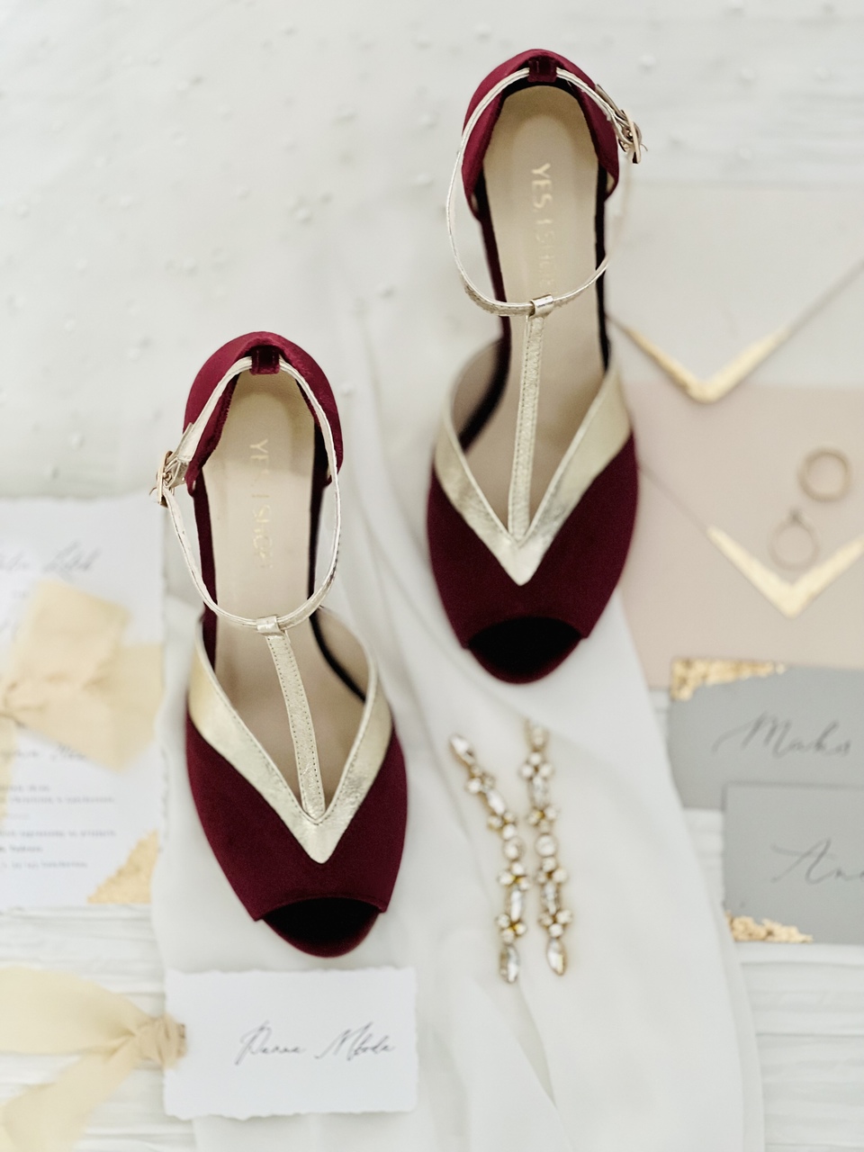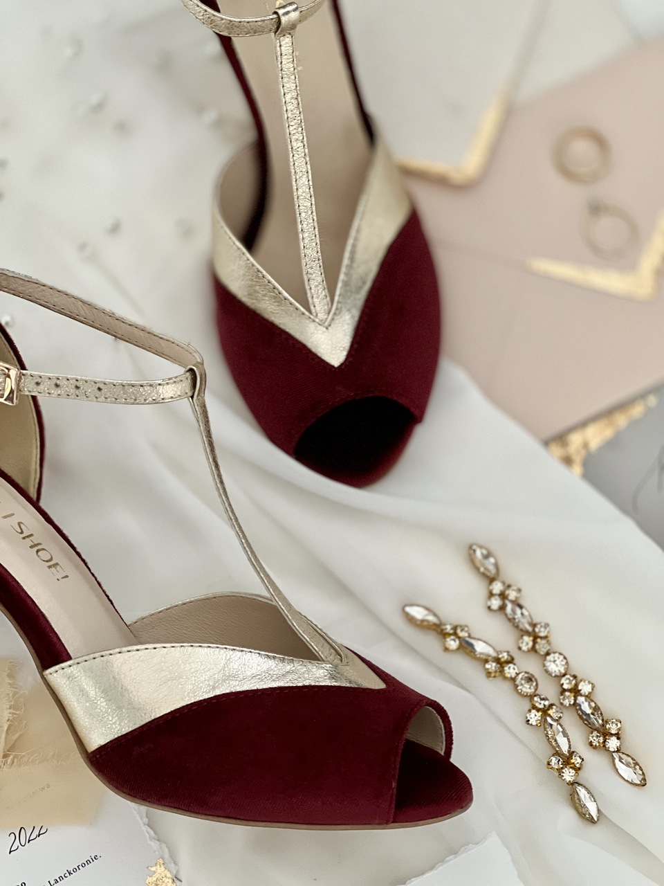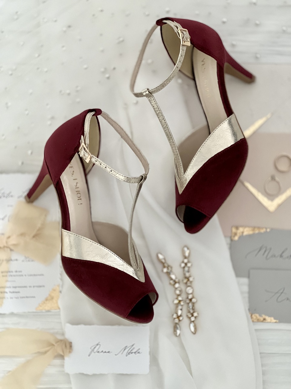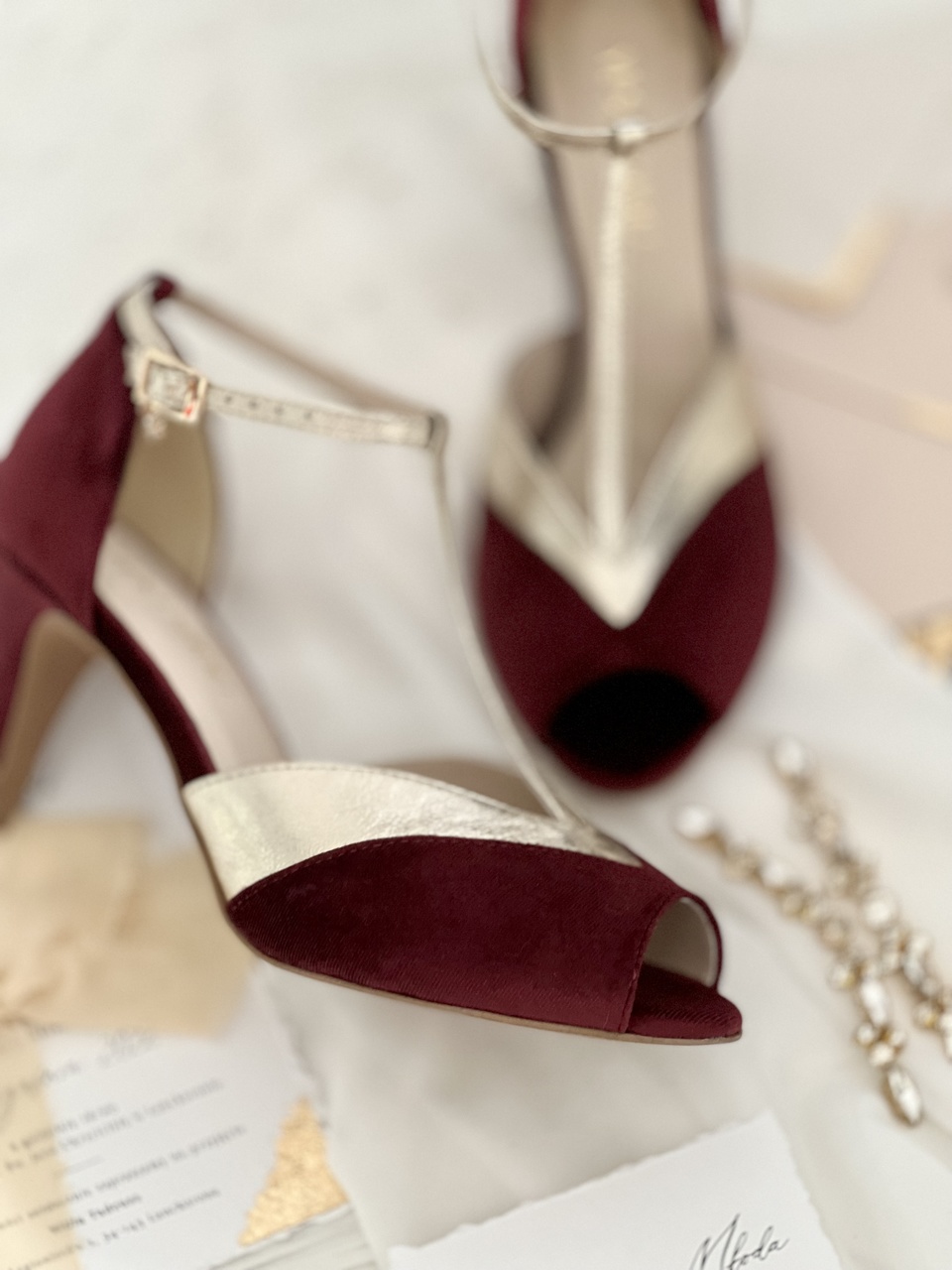Buty ślubne zostały wykonane z atłasu w kolorze bordowo-śliwkowym, który dodaje im elegancji i dostojności. Obcas szpilka o wysokości 8 cm zapewni komfort noszenia przez całą noc.