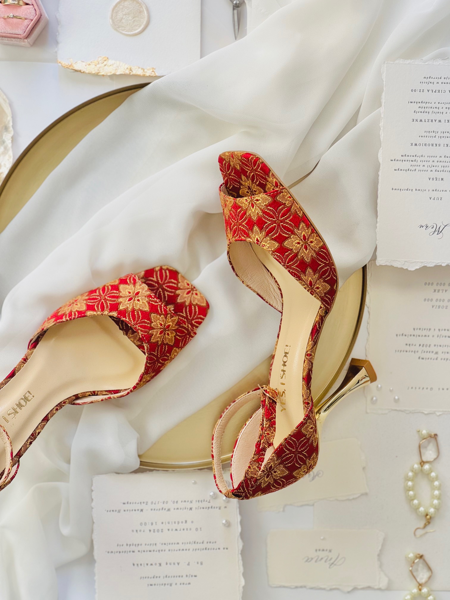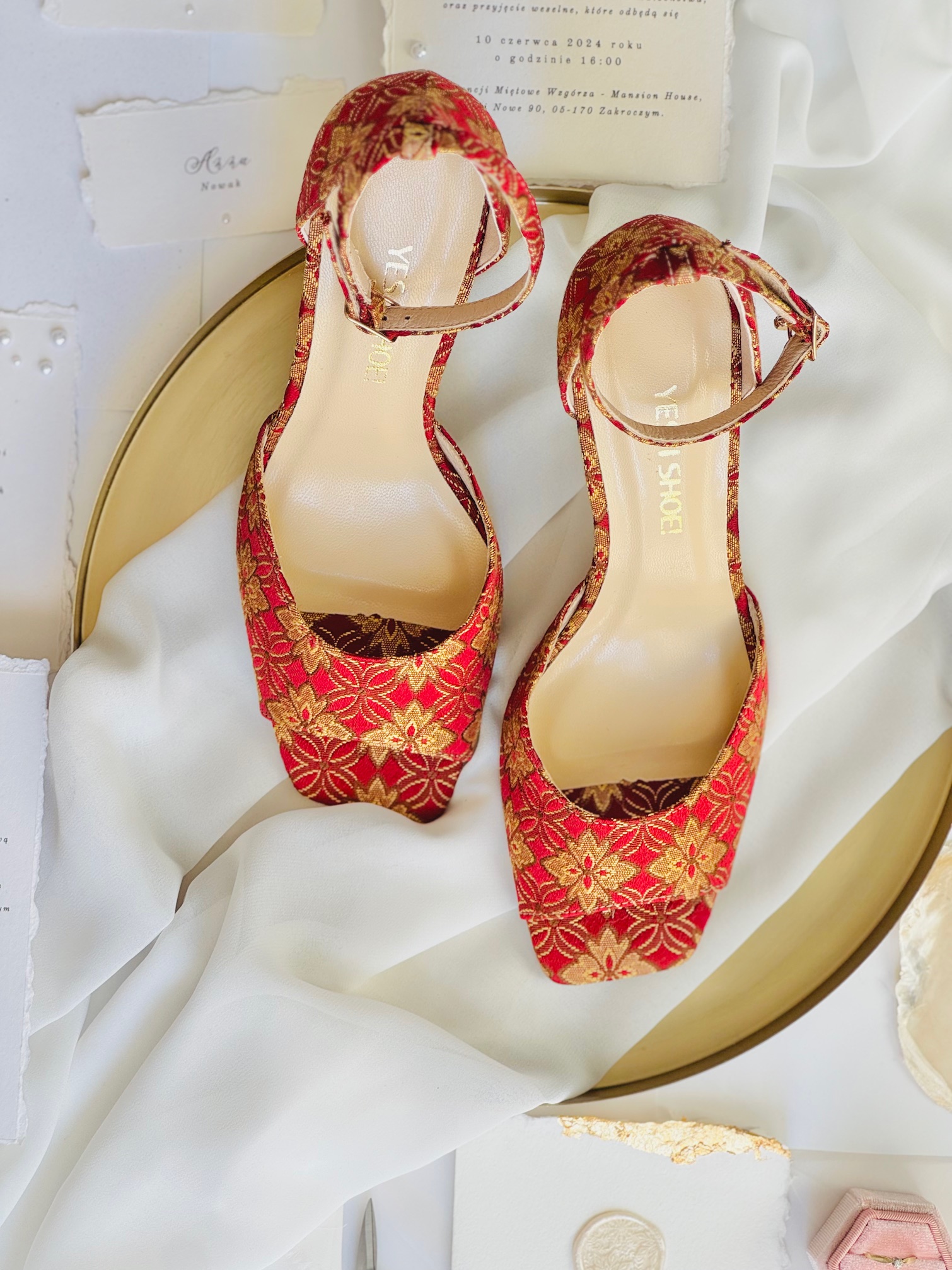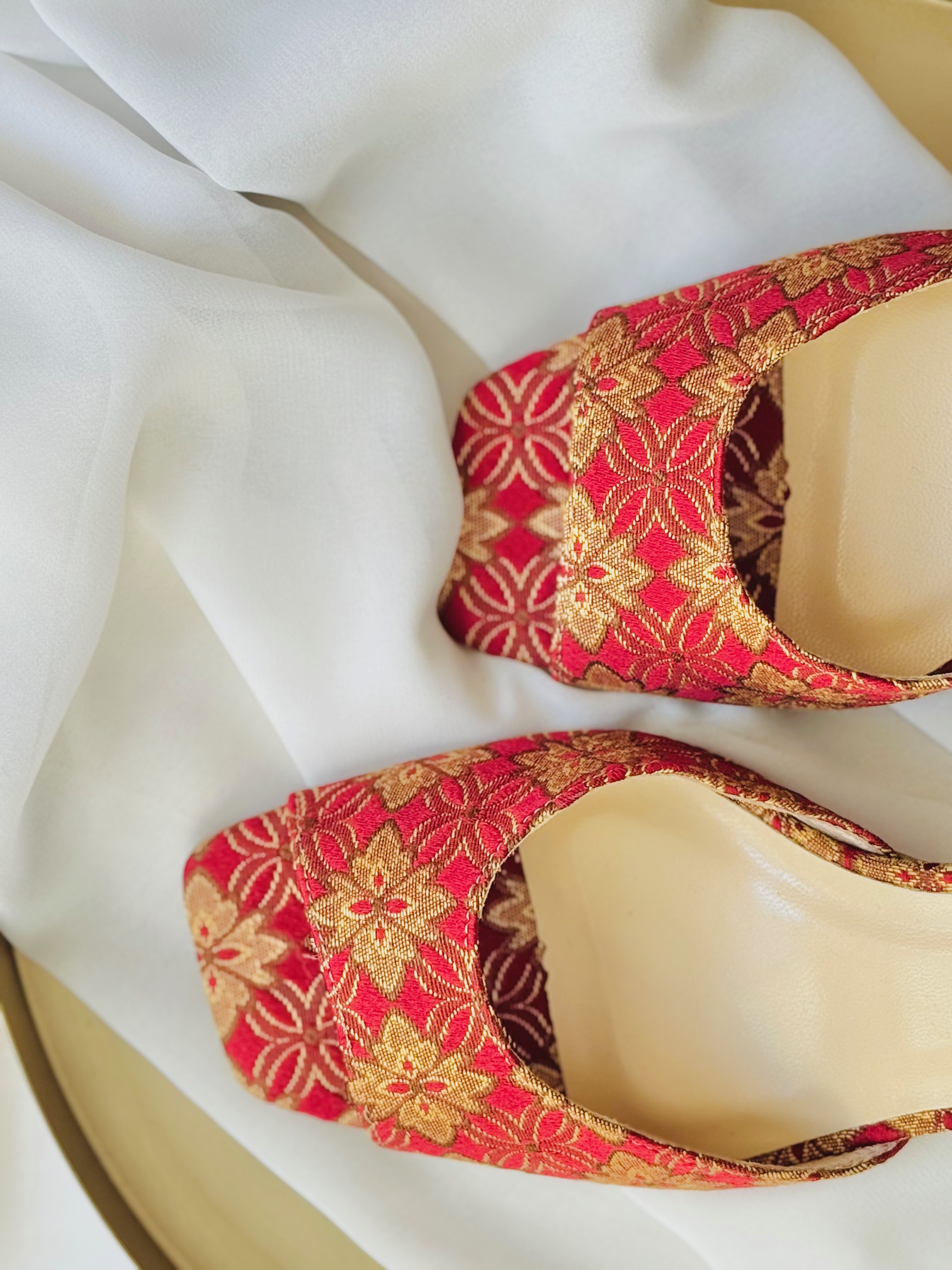Model JANE VINTAGE WINE to buty damskie na obcasie, które łączą w sobie historię, emocje i odważny design. Wykonane z tkaniny vintage w odcieniach głębokiego wina z pomarańczowymi akcentami i geometrycznymi wzorami, przyciągają uwagę od pierwszego spojrzenia. Żakardowa struktura materiału to ukłon w stronę naszych korzeni i rzemiosła dawnych pokoleń, a nowoczesna bryła nadaje im świeżości i współczesnego charakteru.