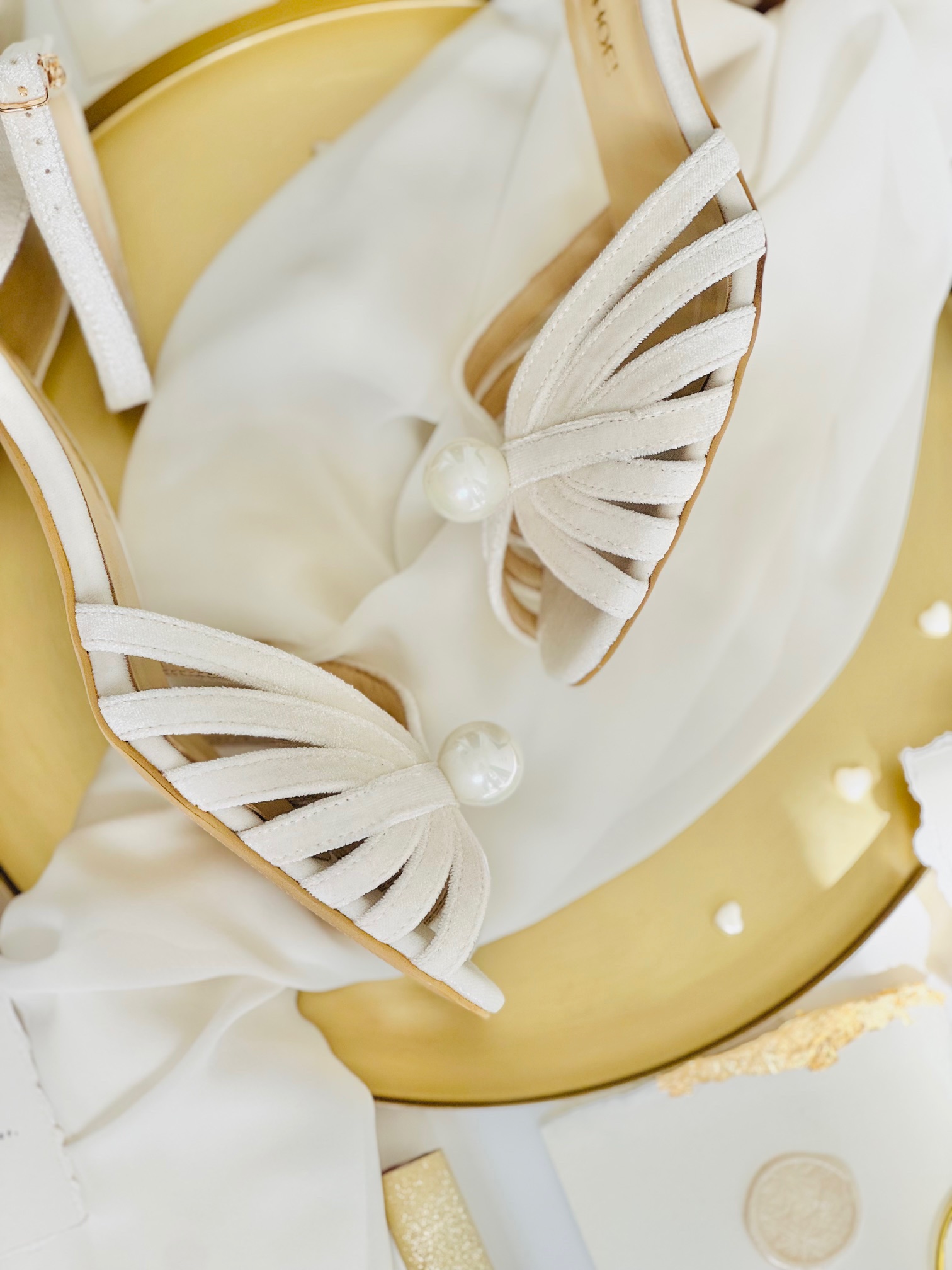Athena Cream – ślubne buty w kolorze śmietankowym z perłą