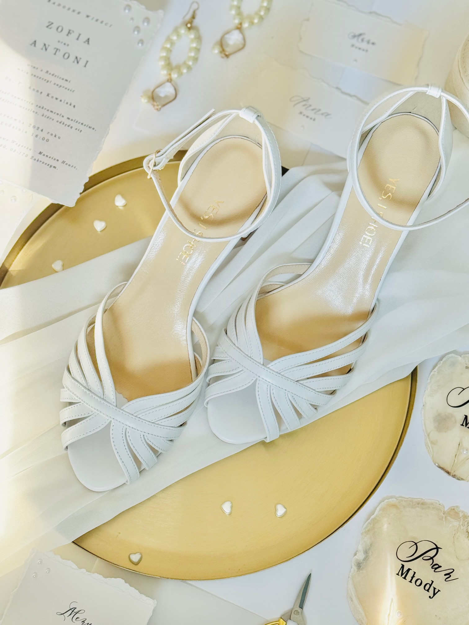 Buty ślubne zostały wykonane na kopycie tanecznym, które doskonale zabezpiecza stopę podczas tańca. Wykończone skórą licową w kolorze przełamanej bieli będą stanowiły idealny dodatek do sukni ślubnej. Obcas w kształcie słupka o wysokości ok 6,5 cm sprawdzi się idealnie podczas całonocnej zabawy, gwarantując Ci stabilne podparcie Twojego ciała.