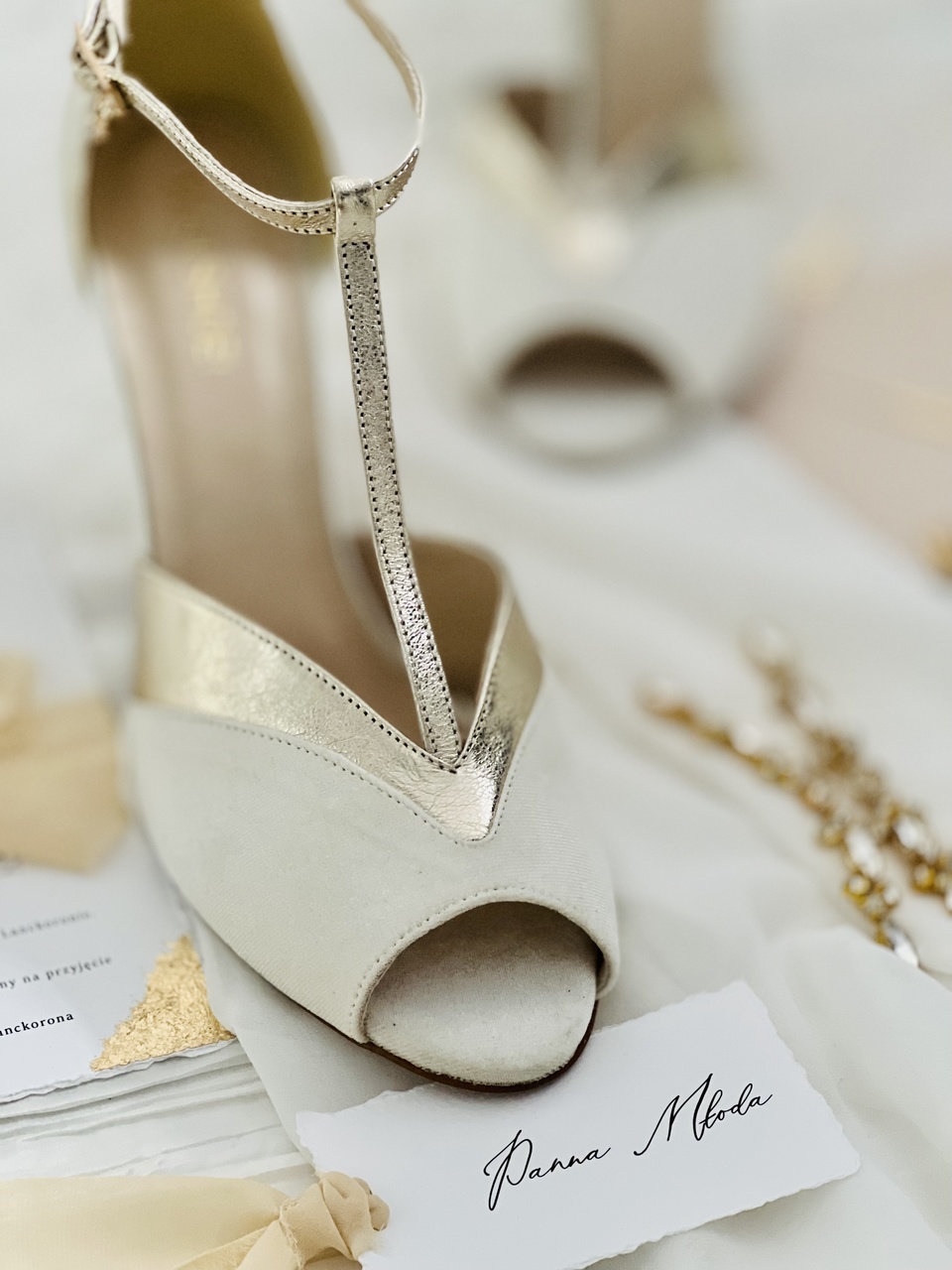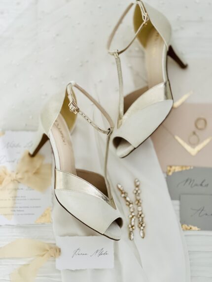 Buty ślubne zostały wykonane z atłasu w kolorze kremowym, który dodaje im elegancji i dostojności. Obcas szpilka o wysokości 8 cm zapewni komfort noszenia przez całą noc.
