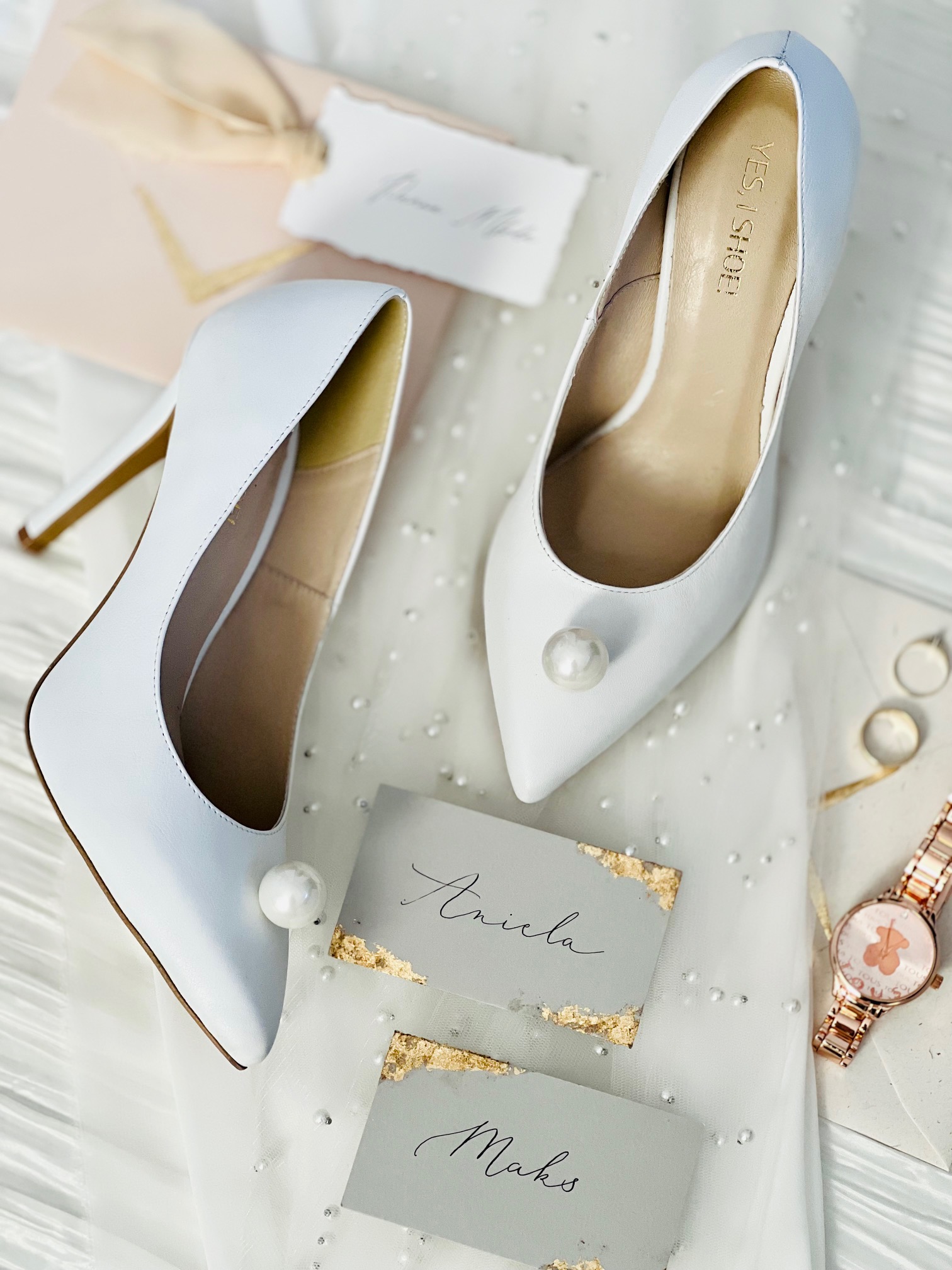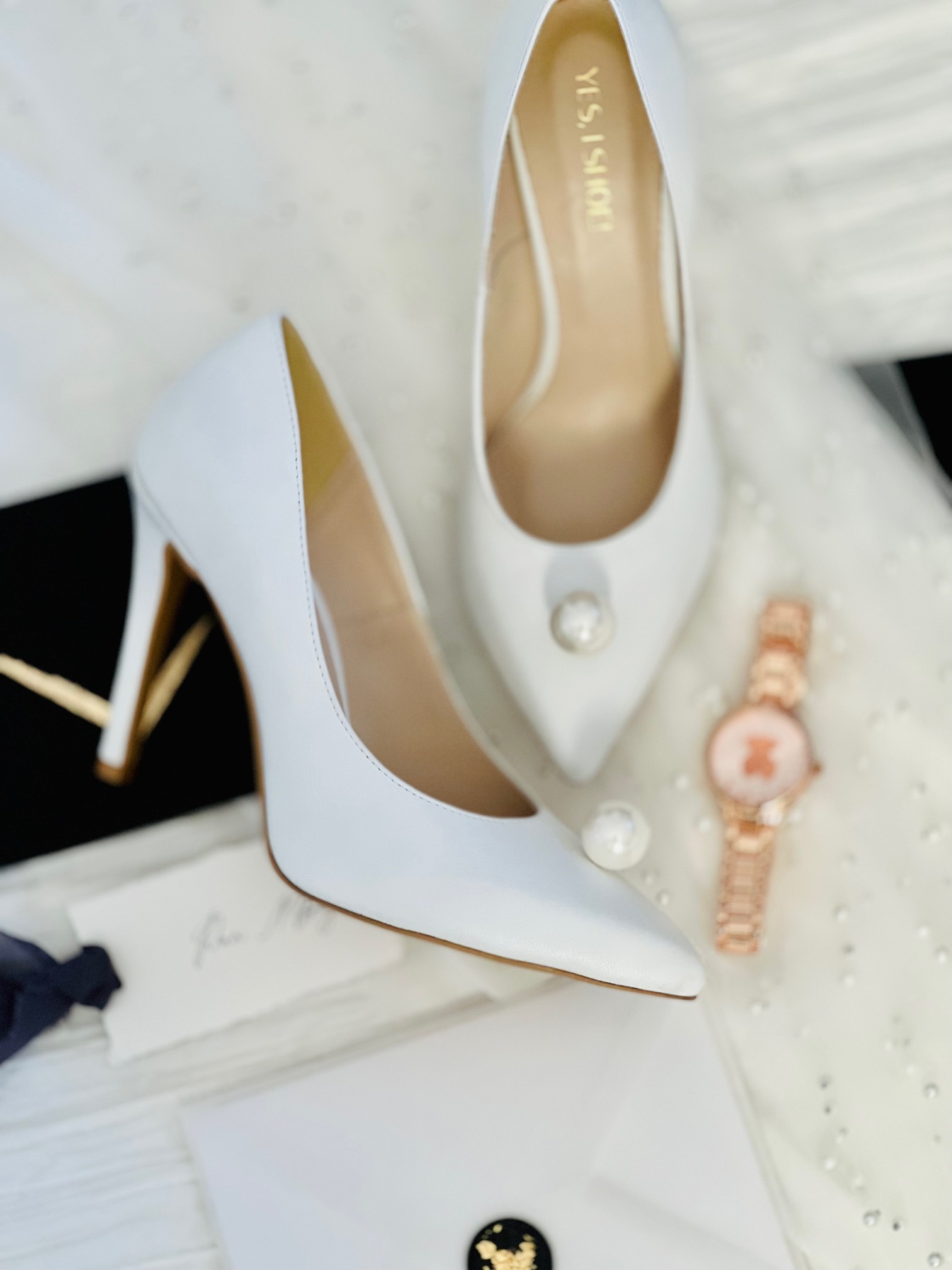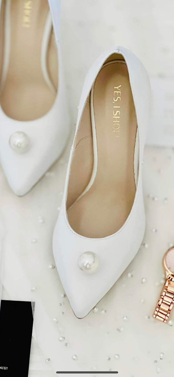 Model Emma to buty ślubne z kolekcji 2023- I’m every Woman. Czółenka ślubne zostały ozdobione perłą, która dodaje im elegancji.