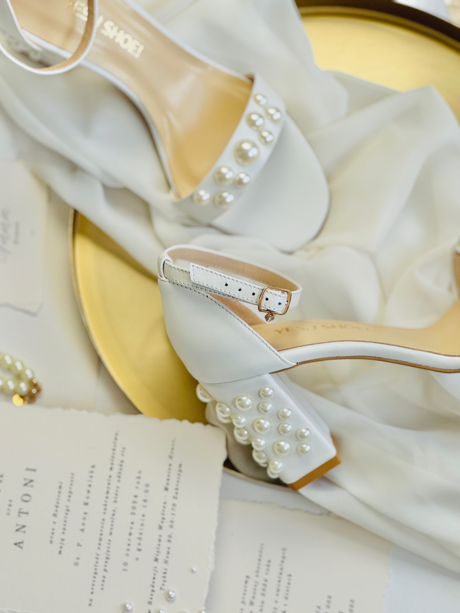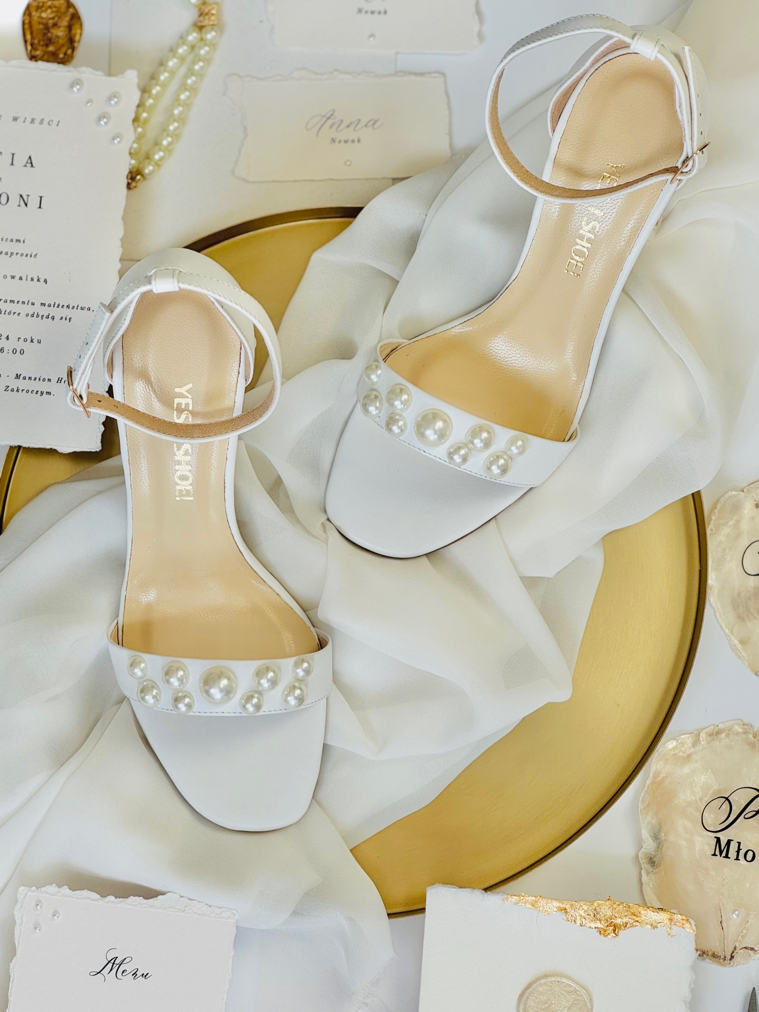 Buty ślubne IVY PEARL- skórzane sandałki na słupku z perłami