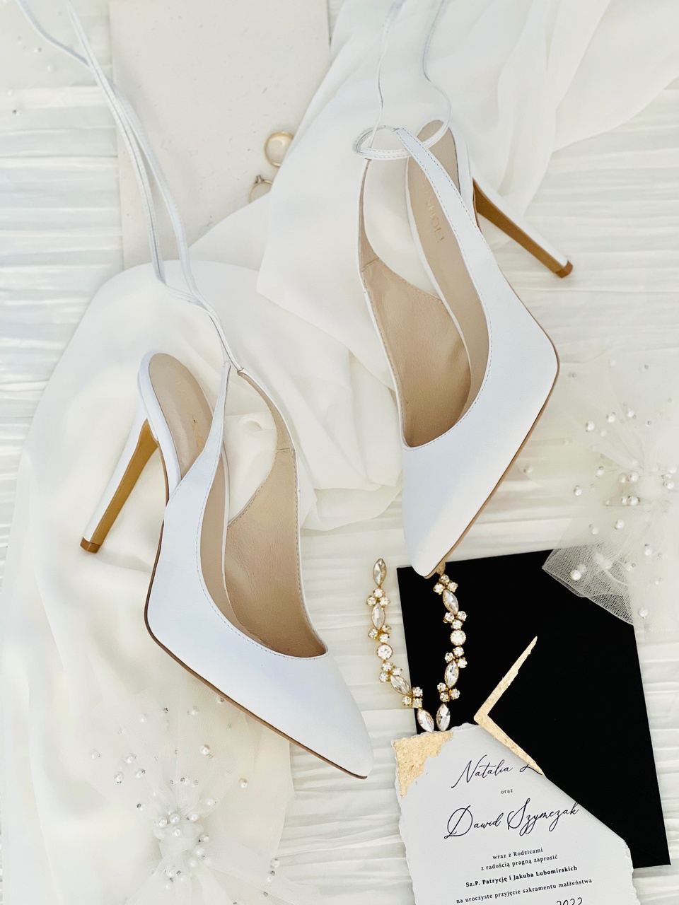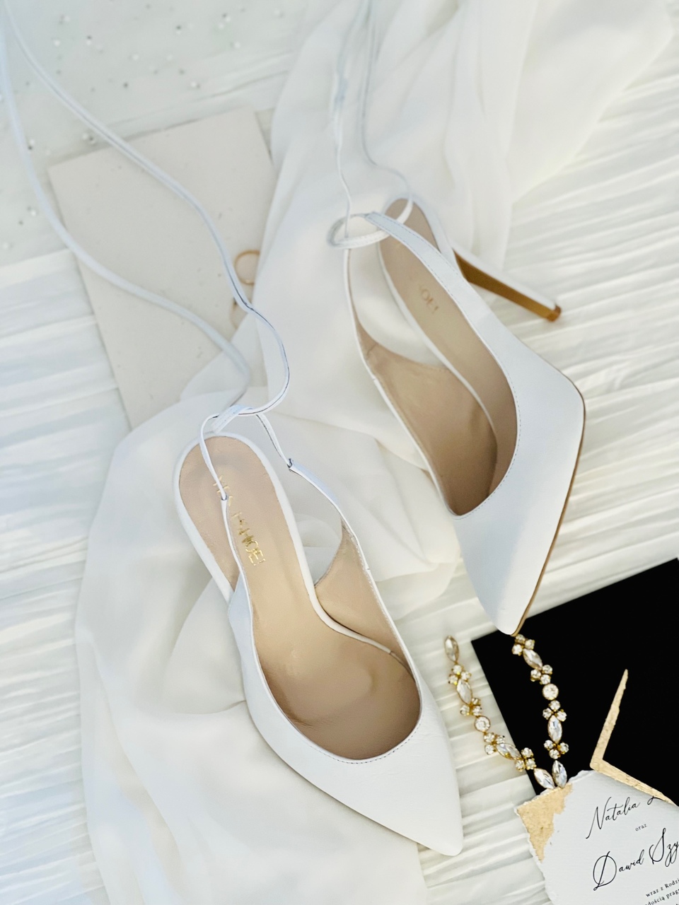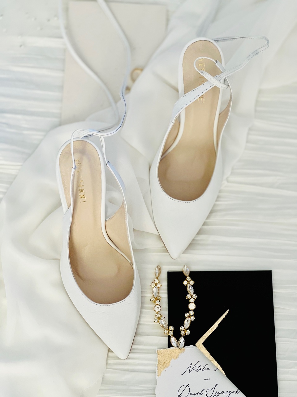 Model Kelly to buty ślubne z kolekcji 2023- I’m every Woman. Buty ślubne wykonaliśmy w całości z naturalnej, miękkiej skóry licowej w kolorze przełamanej bieli. Przód buta został zabudowany, ale pozostawiliśmy odkrytą piętę. Zabieg ten dodał modelowi lekkości.