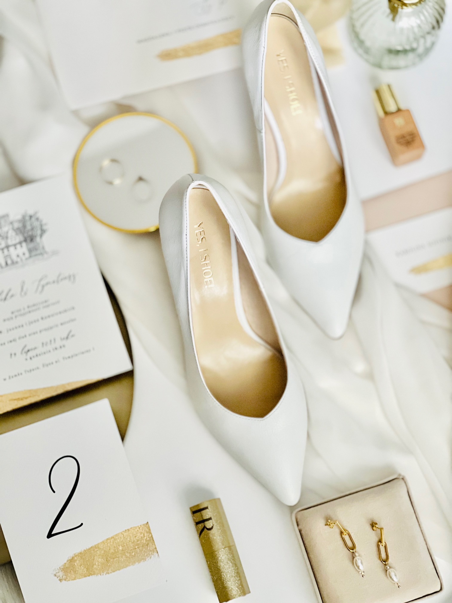 Wykonane z najwyższej jakości skóry licowej w kolorze przełamanej bieli, zapewnią nie tylko niezwykły komfort, ale także dodadzą elegancji każdej pannie młodej.