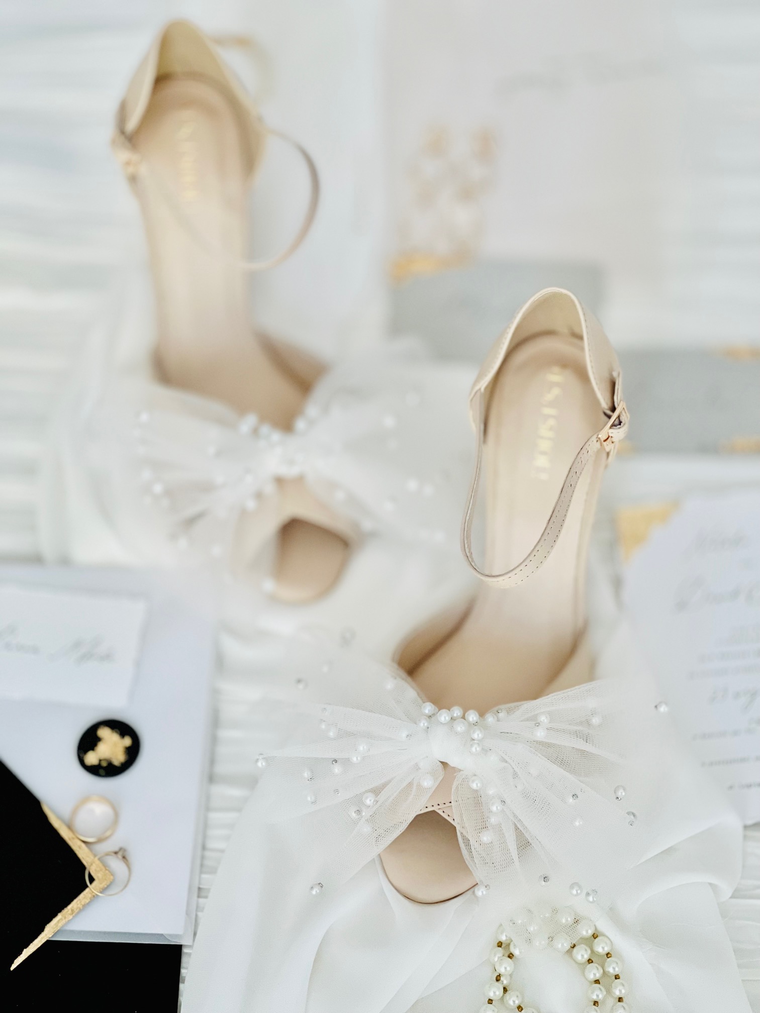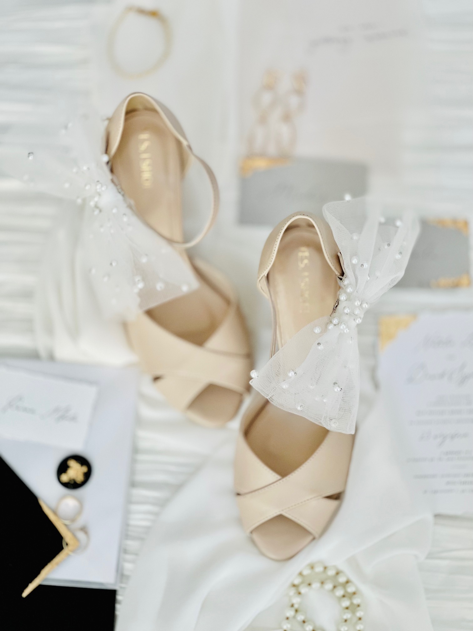 Do butów dołączona jest ręcznie szyta, duża kokarda z perłami. Kokarda została umieszczona na klipsie, co daje możliwość dowolnego przepinania ozdoby. Możesz mieć buty z klipsami, a także całkowicie gładkie. Takie rozwiązanie jest idealne dla kobiet, które kochają bawić się modą.