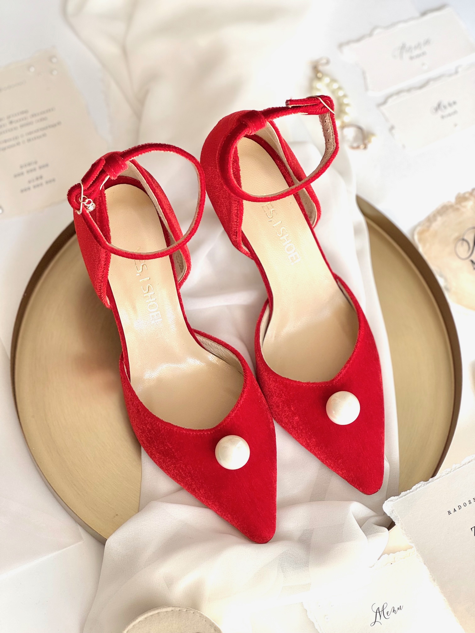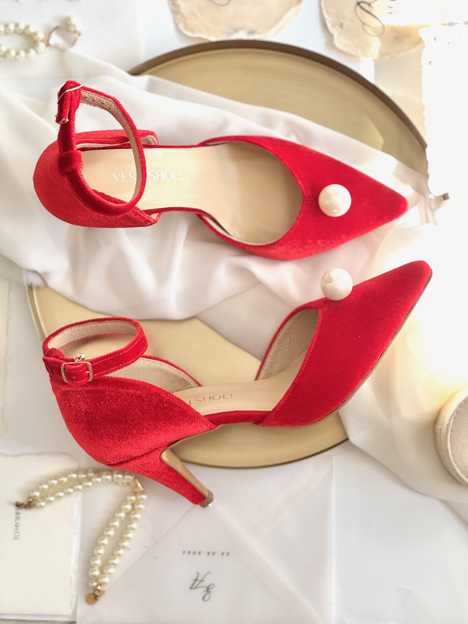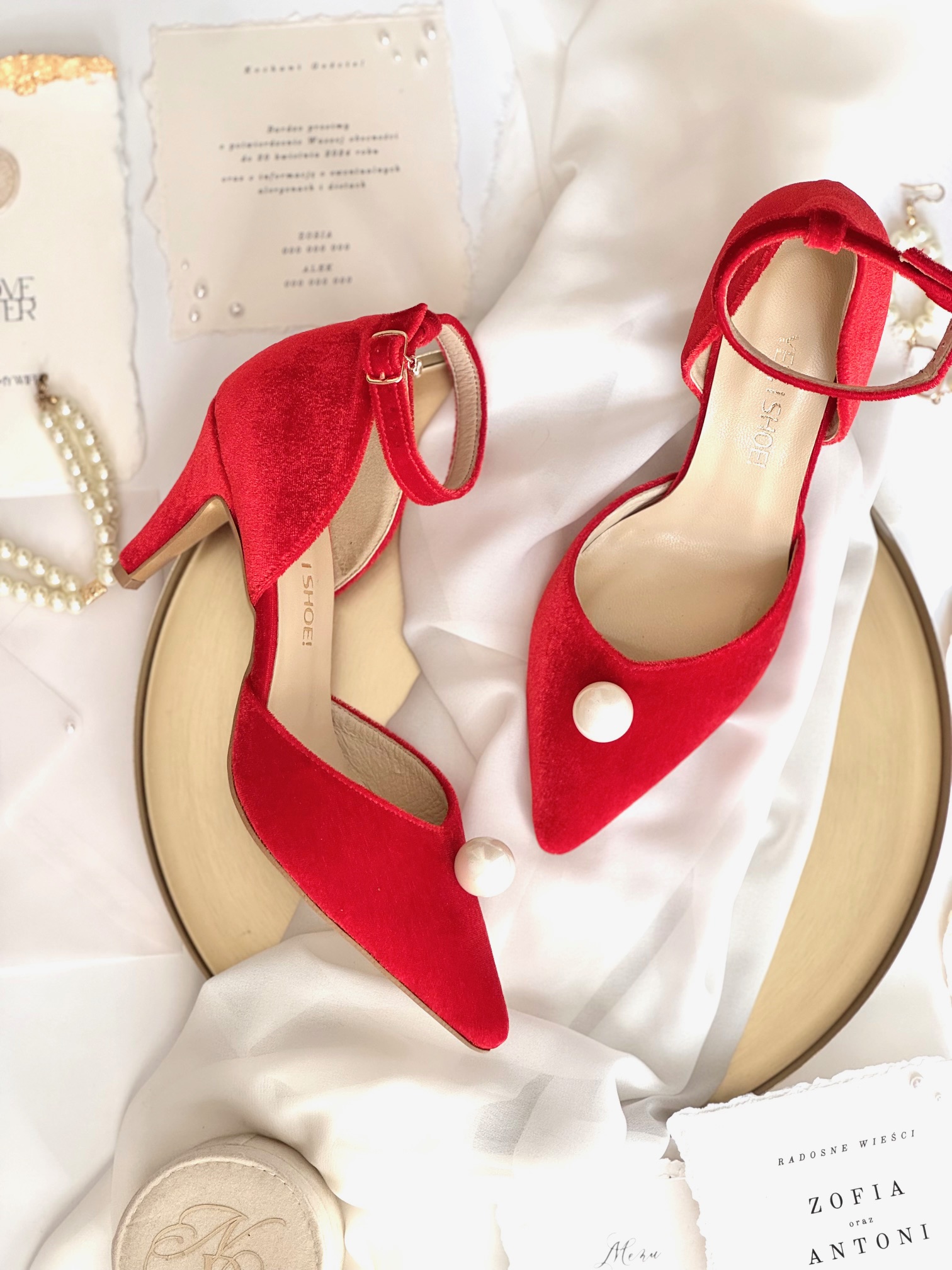 Model Candy Red to buty damskie z kolekcji 2025- SISTERHOOD. Czółenka ślubne wykonaliśmy z atłasu w kolorze czerwonym. Buty na obcasie wyróżnia zabudowany nosek wycięty w szpic, co optycznie wydłuży sylwetkę oraz ponadczasowa perła, która nada elegancji Twojej stylizacji.