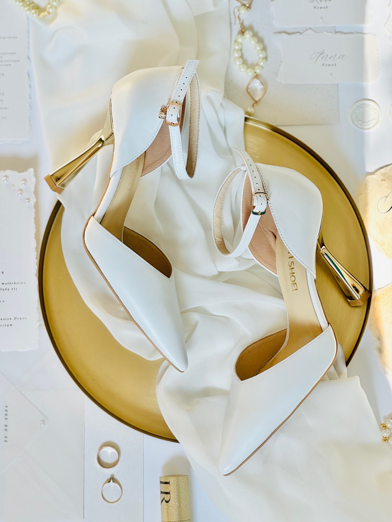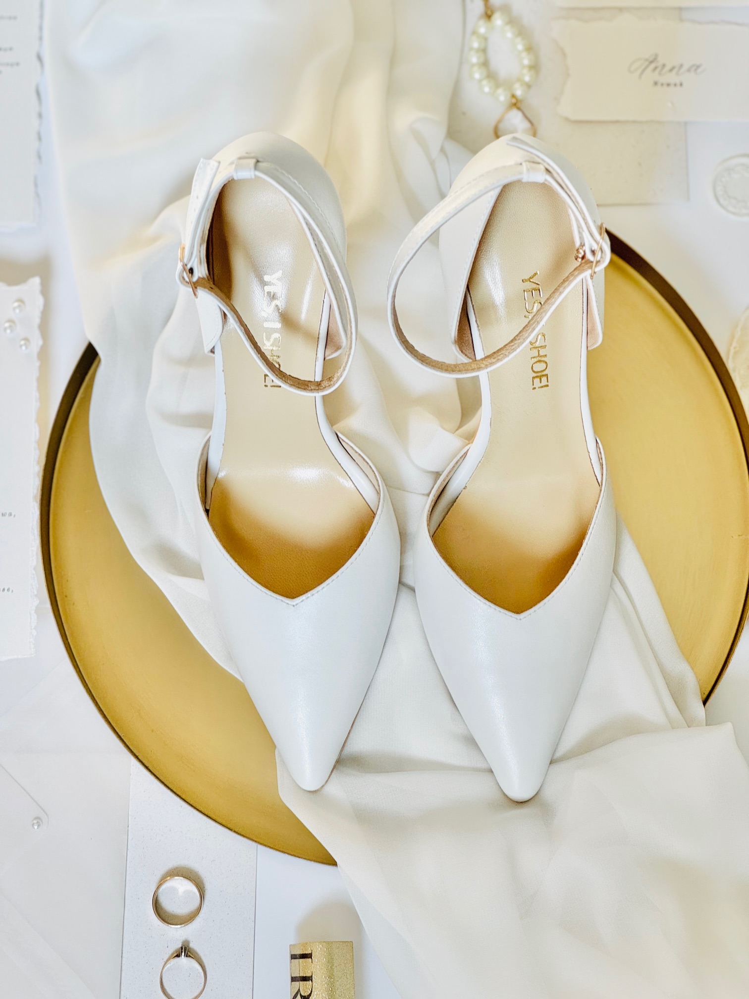 Wykonane z najwyższej jakości skóry licowej w kolorze przełamanej bieli, zapewnią nie tylko niezwykły komfort, ale także dodadzą elegancji i dziewczęcego uroku każdej pannie młodej.