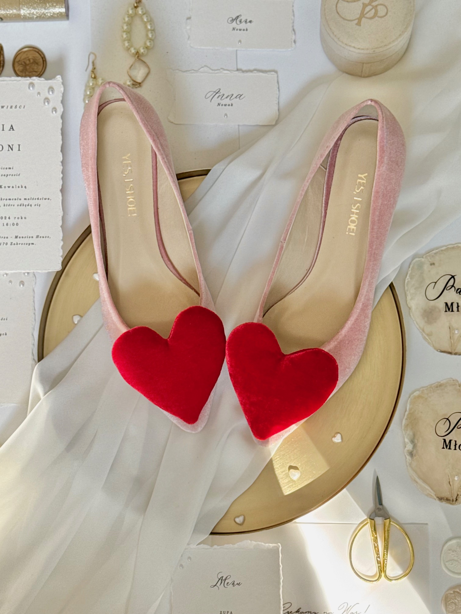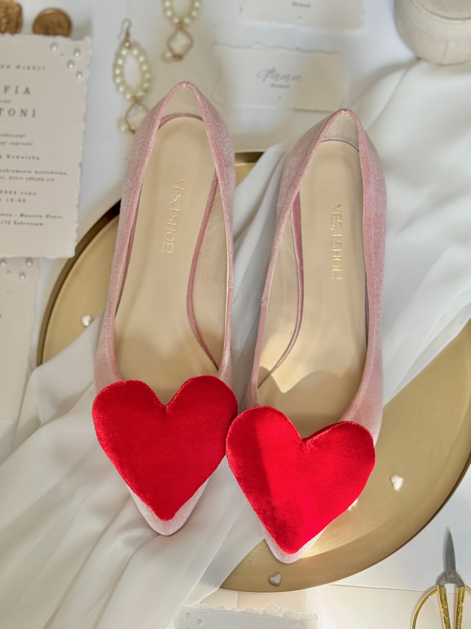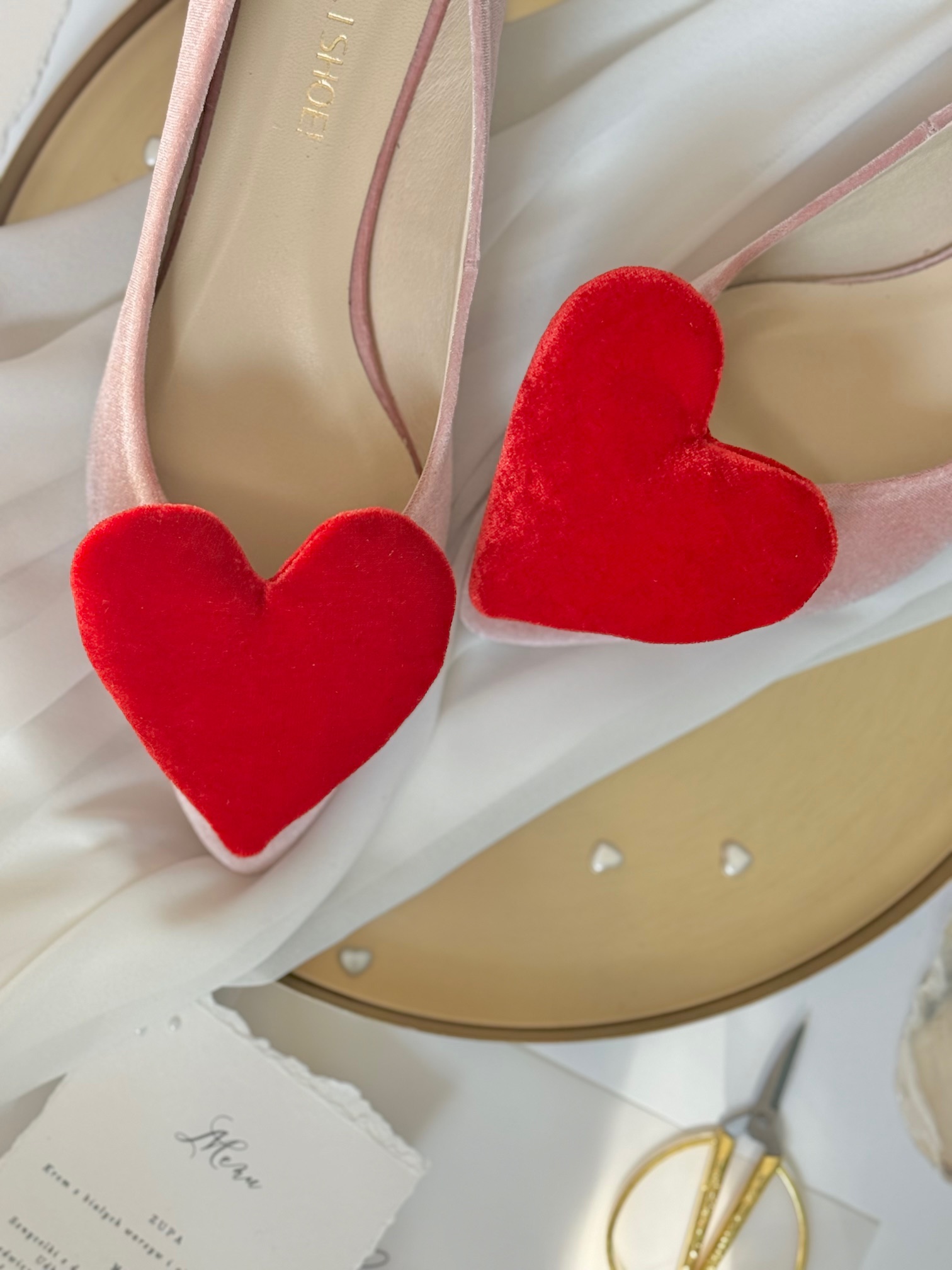 Romantyzmu dodaje serce, która dopełni całą stylizację. . Jest wyróżnikiem i dowodem na to, że płaskie buty ślubne mogą być bardzo kobiece.