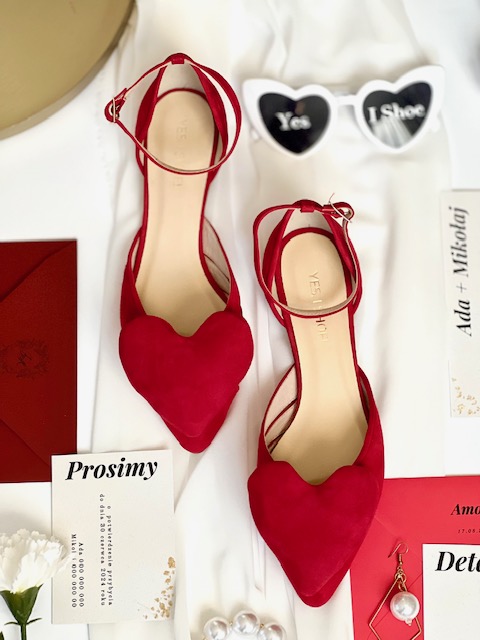 Wybierz czerwone buty ślubne Amore Flat do swojej sukni i poczuj się wyjątkowo w tym najważniejszym dniu Twojego życia!