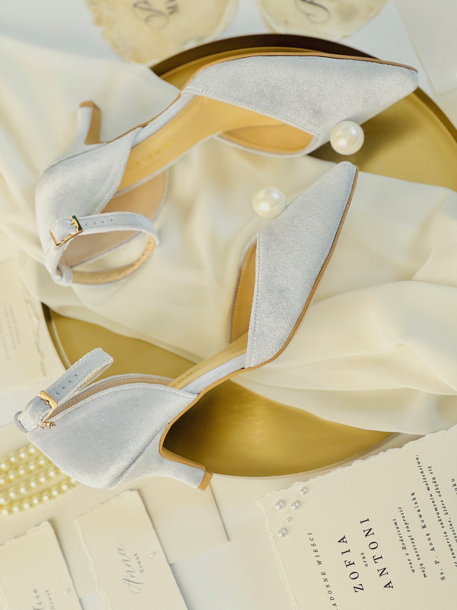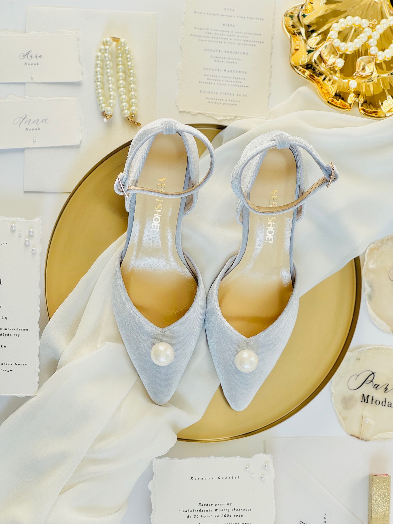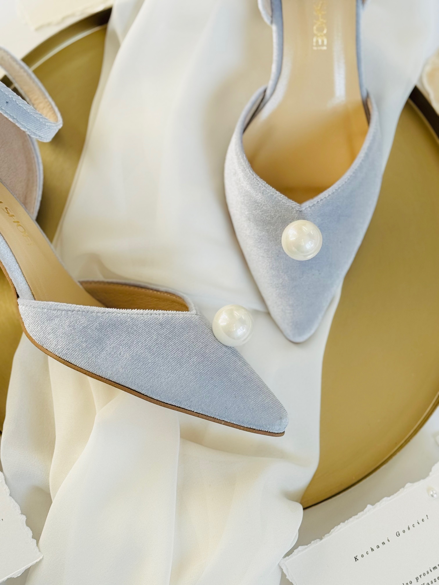 Błękitne buty ślubne z perełką – elegancja i wygoda na Twój wyjątkowy dzień!