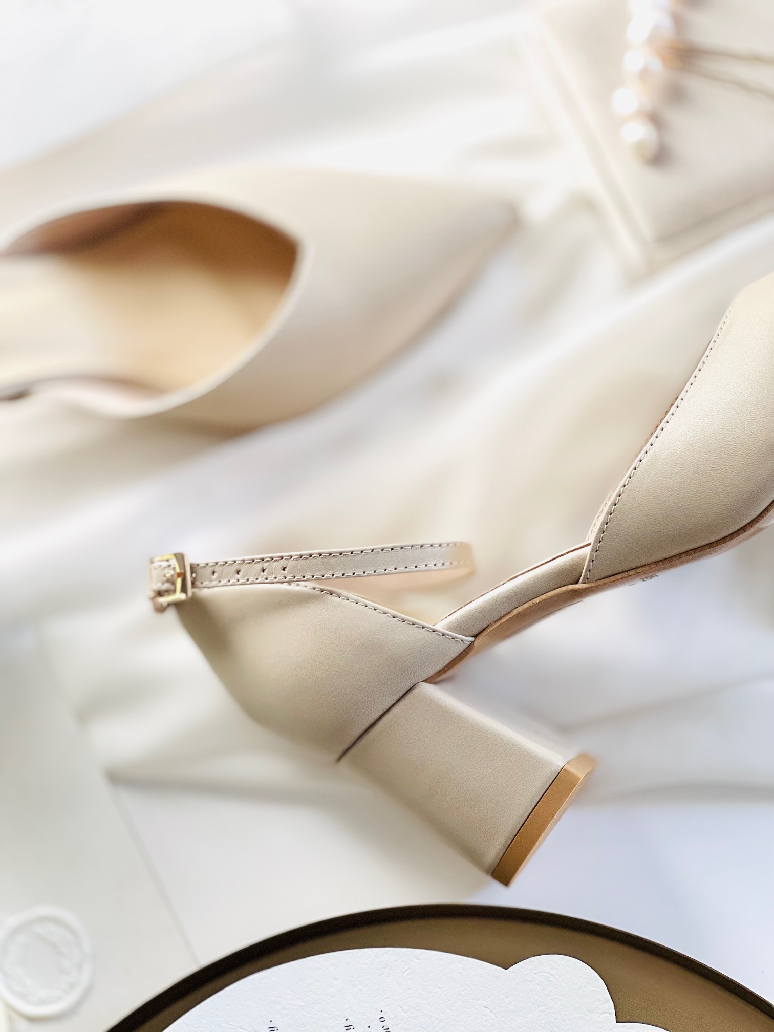 Model Eve to buty ślubne z kolekcji 2023- I’m every Woman. Czółenka ślubne wykonaliśmy w całości z naturalnej, miękkiej skóry licowej w kolorze nude. Buty ślubne wyróżnia zabudowany nosek wycięty w szpic, co optycznie wydłuży sylwetkę.