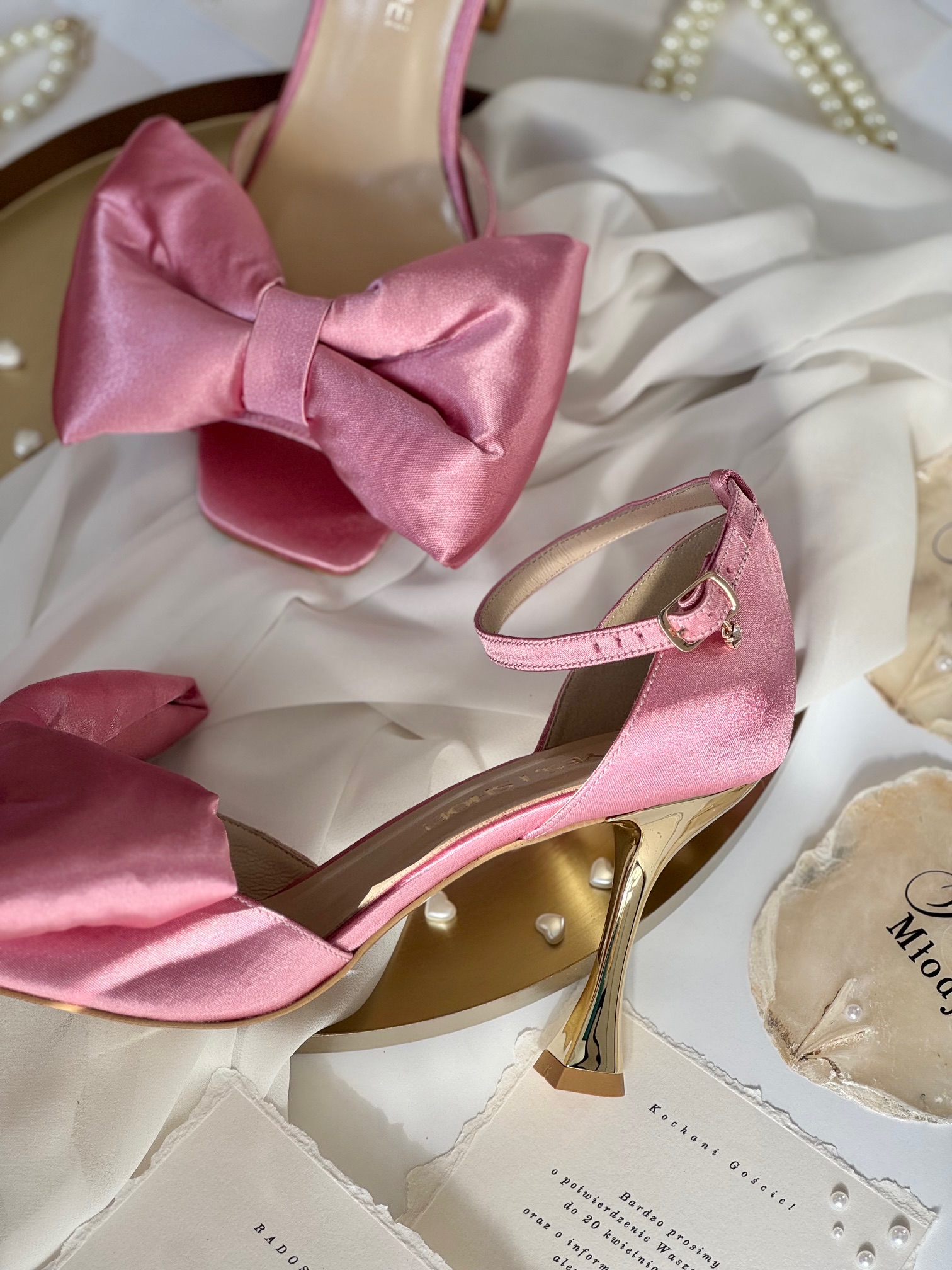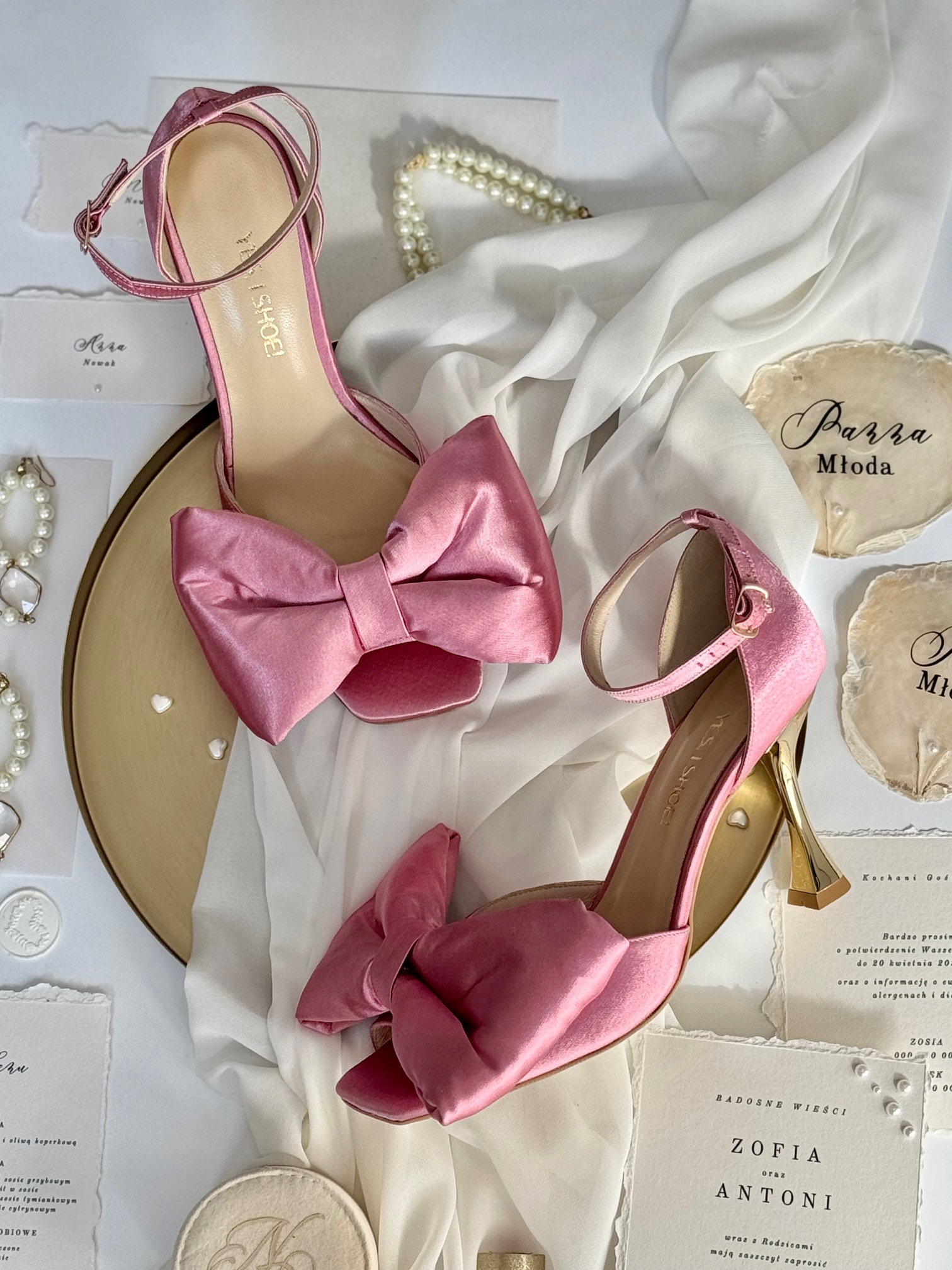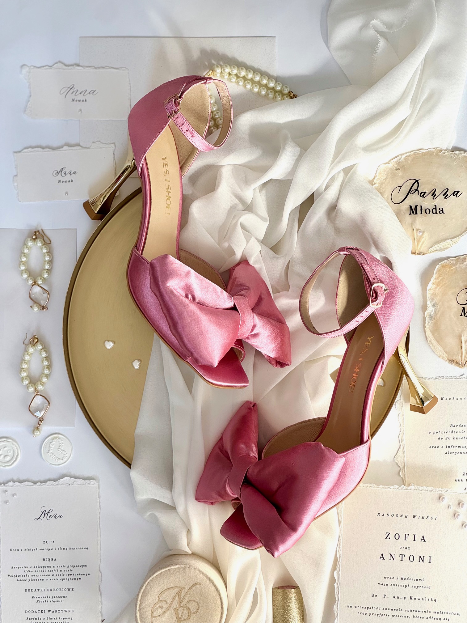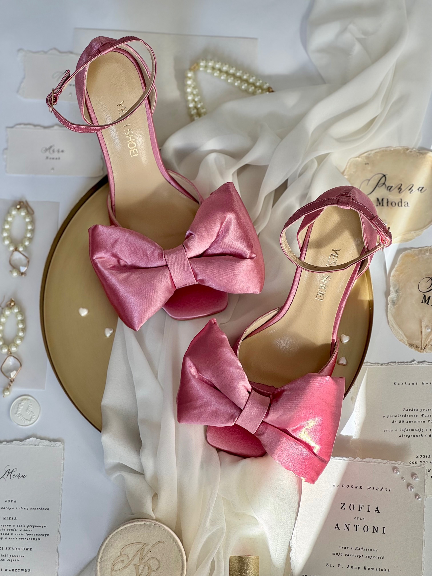 Aby zapewnić Ci pełne bezpieczeństwo i komfort, różowe buty ślubne Holly Dark Pink posiadają pasek wokół kostki, który zabezpiecza buta przed przypadkowym spadnięciem. Dodatkowo, duże kokardy dodają butom uroku i romantycznego charakteru.