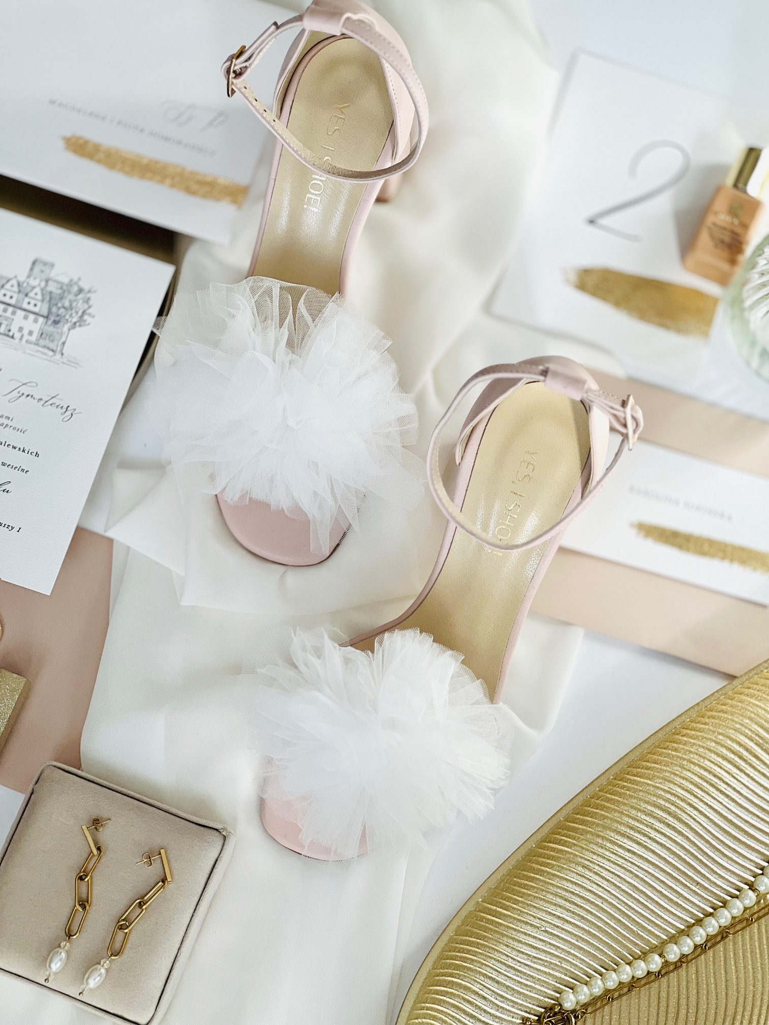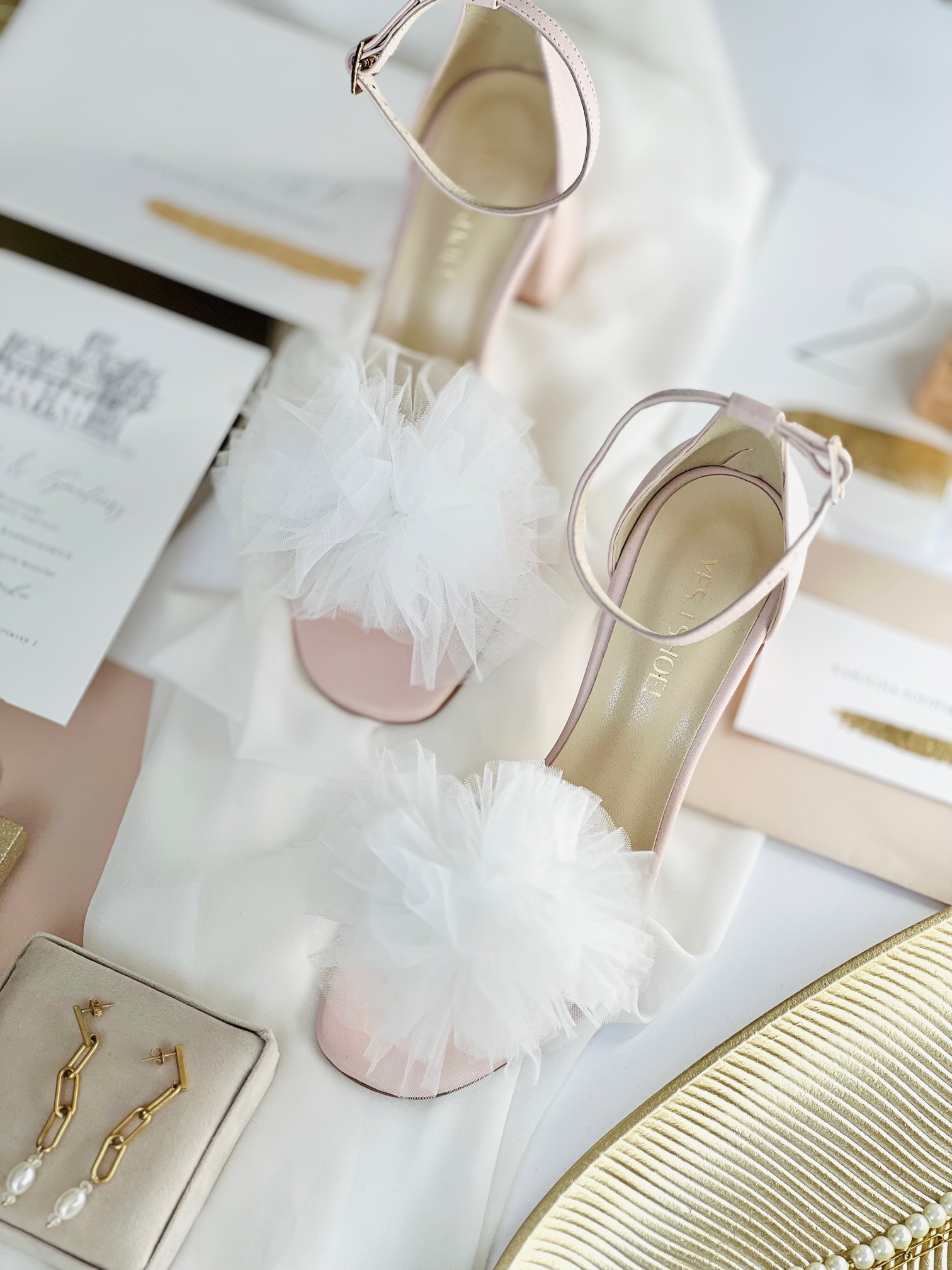 Dodatkową ozdobę stanowią klipsy, które możesz dowolnie przepinać i bawić się modą. Wybierz jeden z modeli klipsów i dopasuj swoje buty ślubne do stylizacji.
