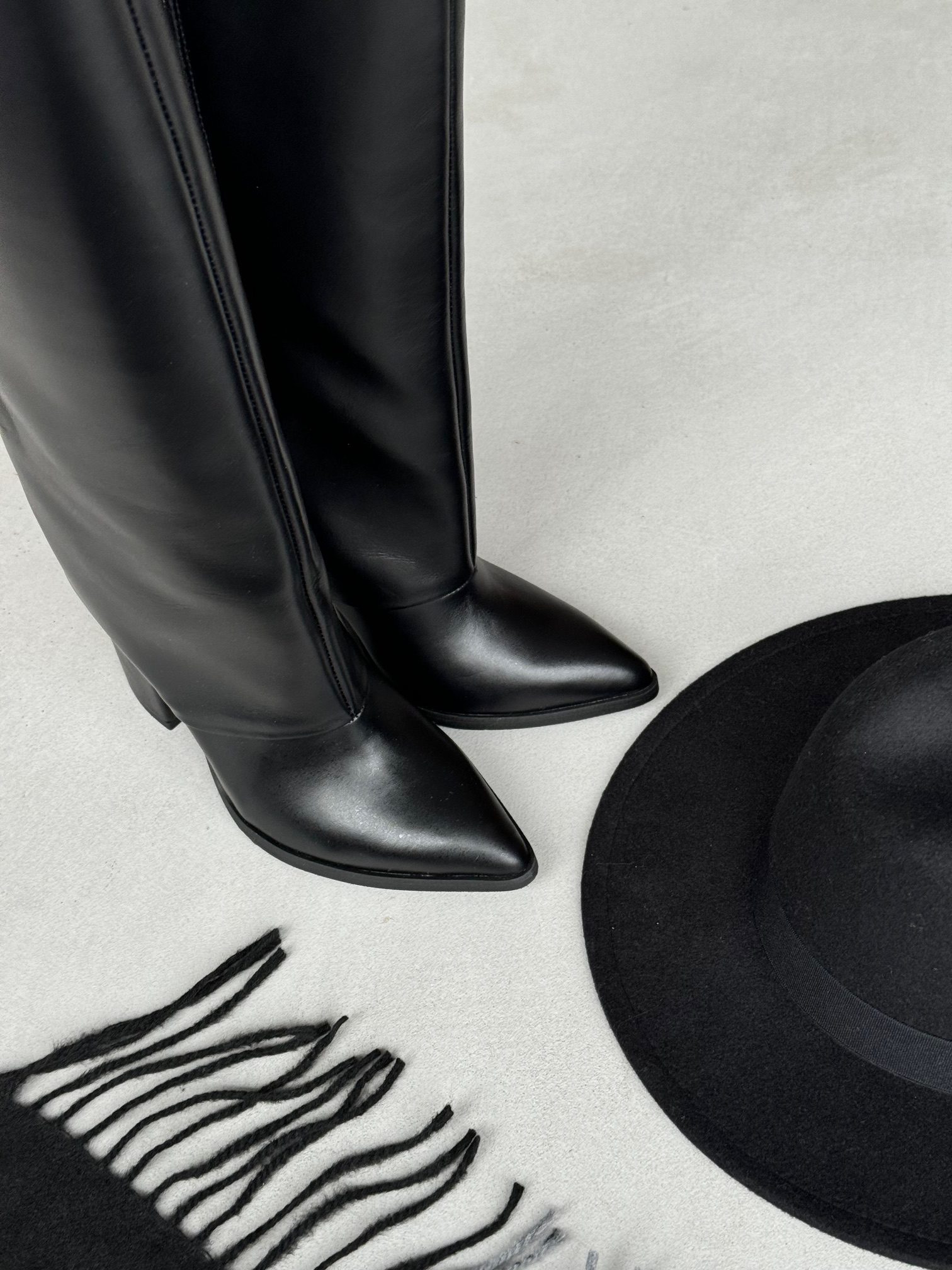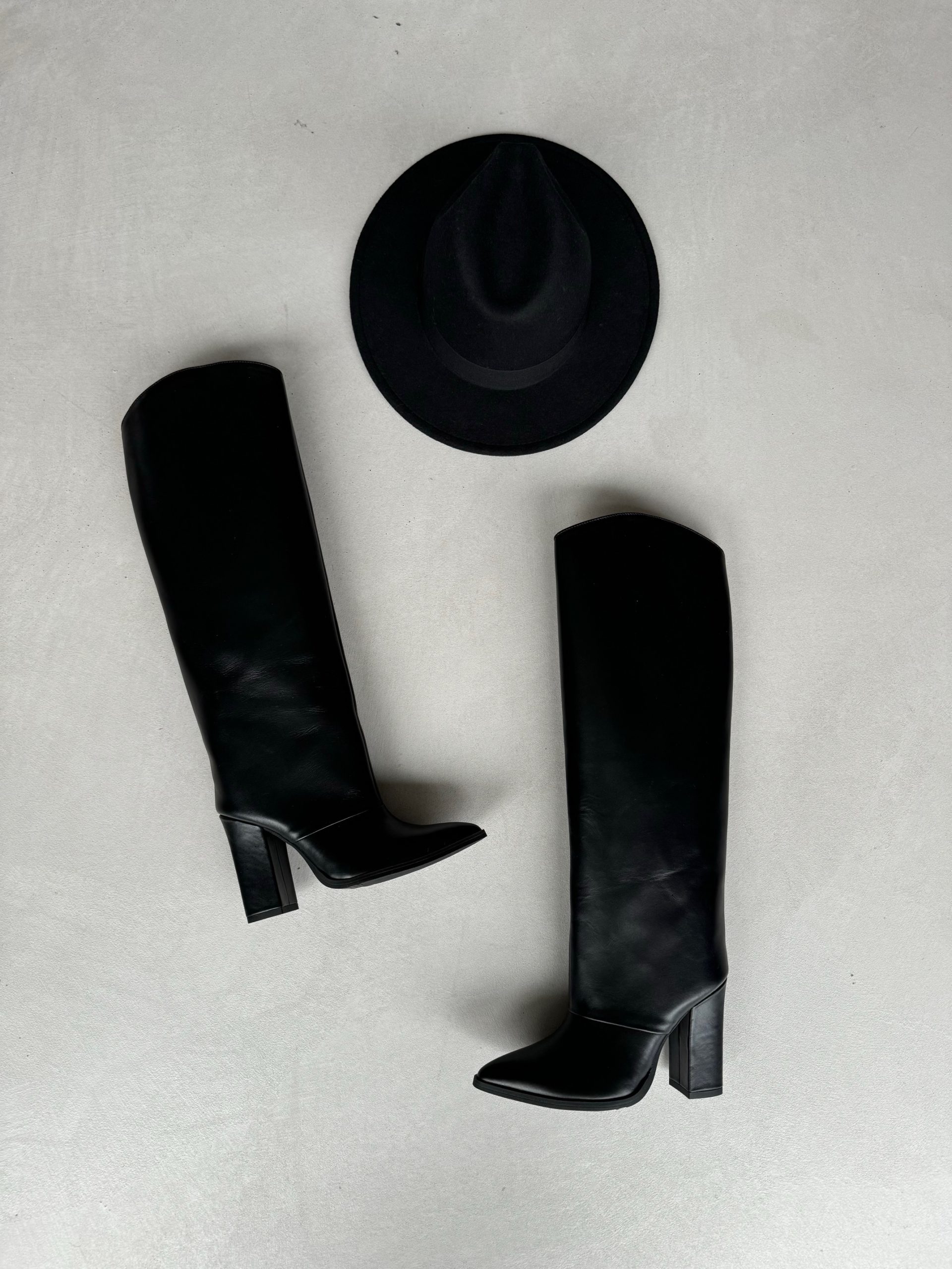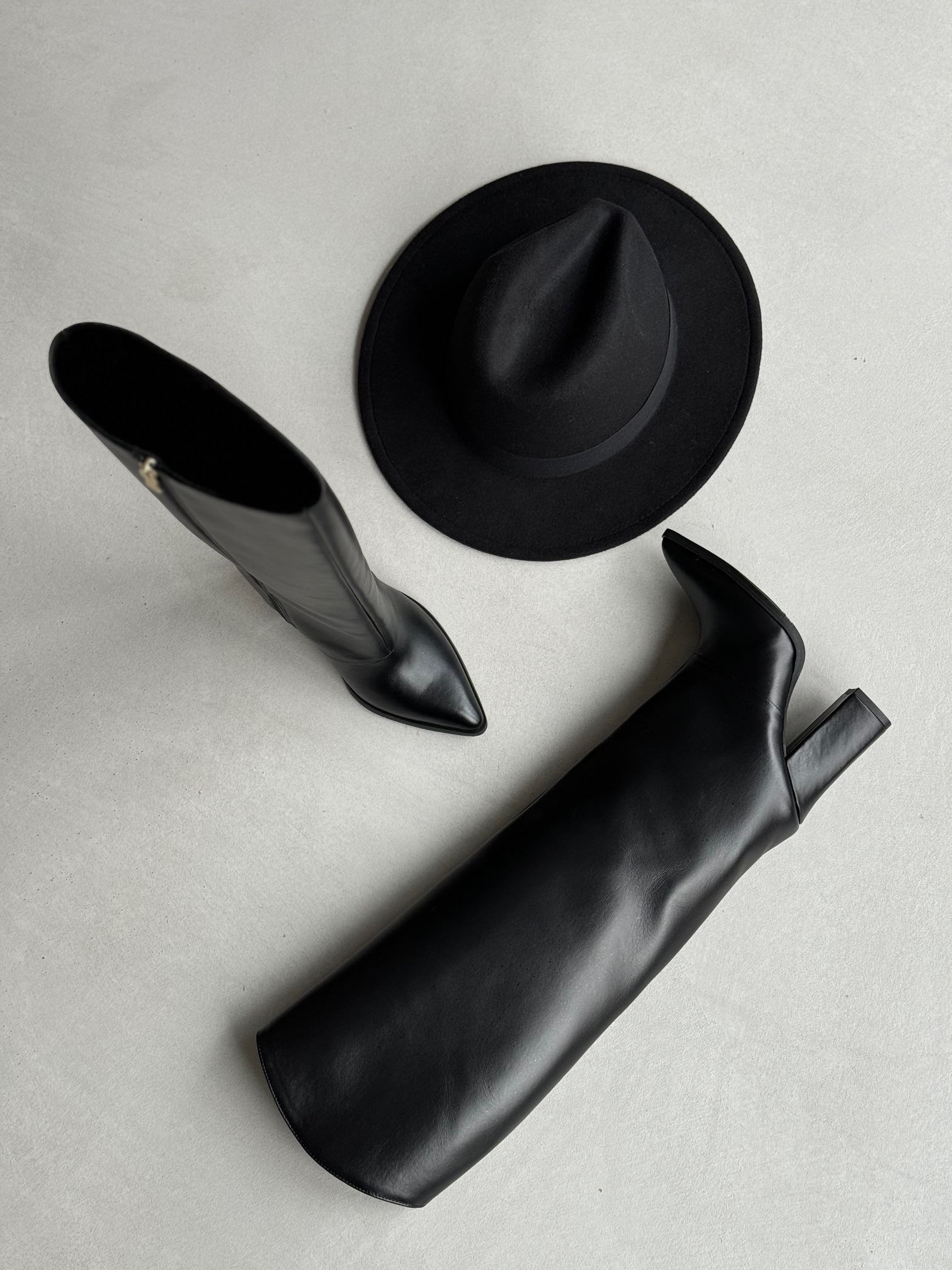 Ręcznie szyte czarne kozaki ze skóry licowej- idealne buty na zimę.