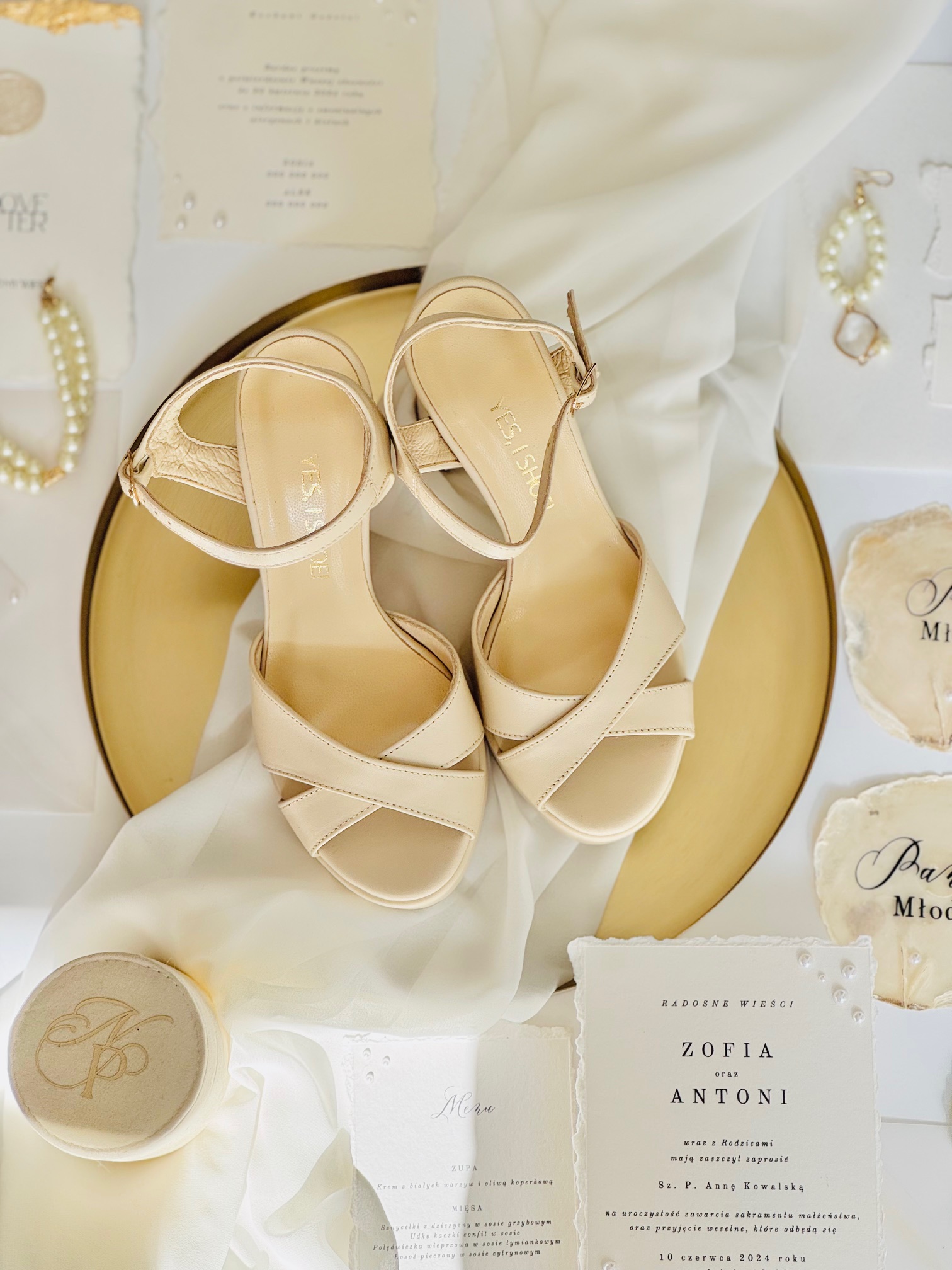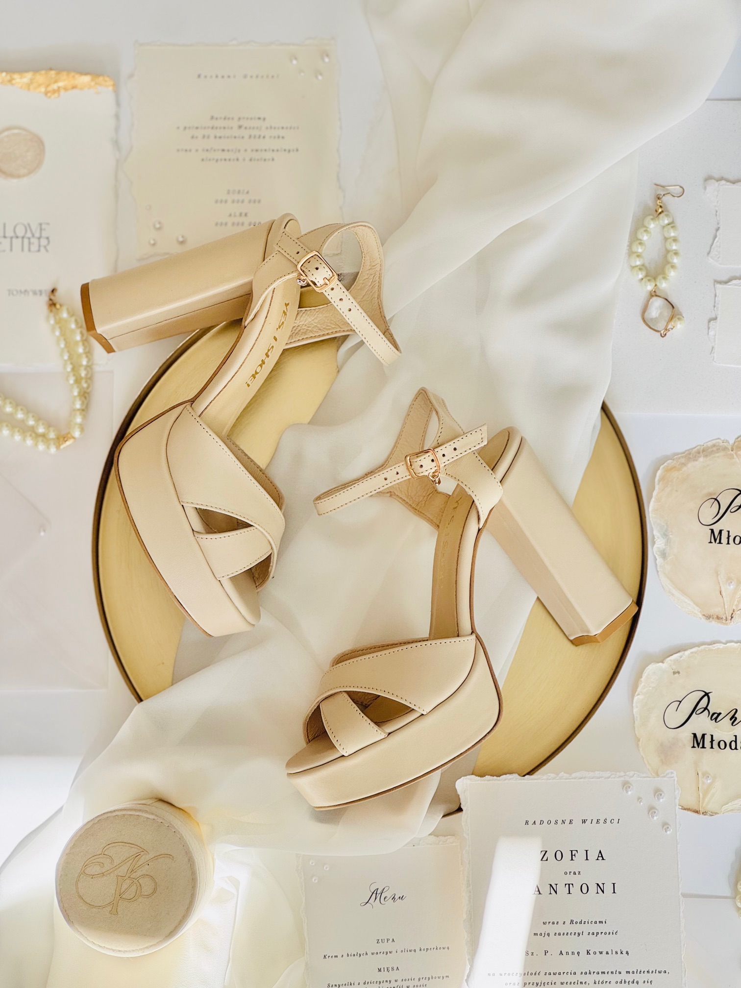 Wykonane ze skóry licowej w kolorze beżowym, zapewnią nie tylko niezwykły komfort, ale także dodadzą elegancji i dziewczęcego uroku każdej pannie młodej.